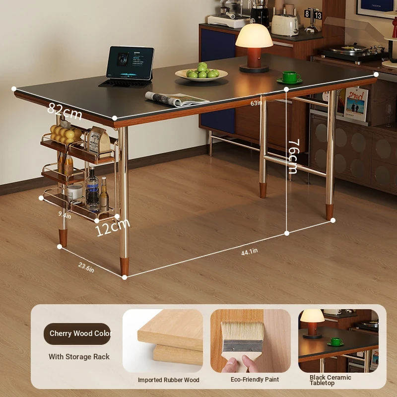 Black rock plate 62.99in single table + shelf [cherry wood color]]