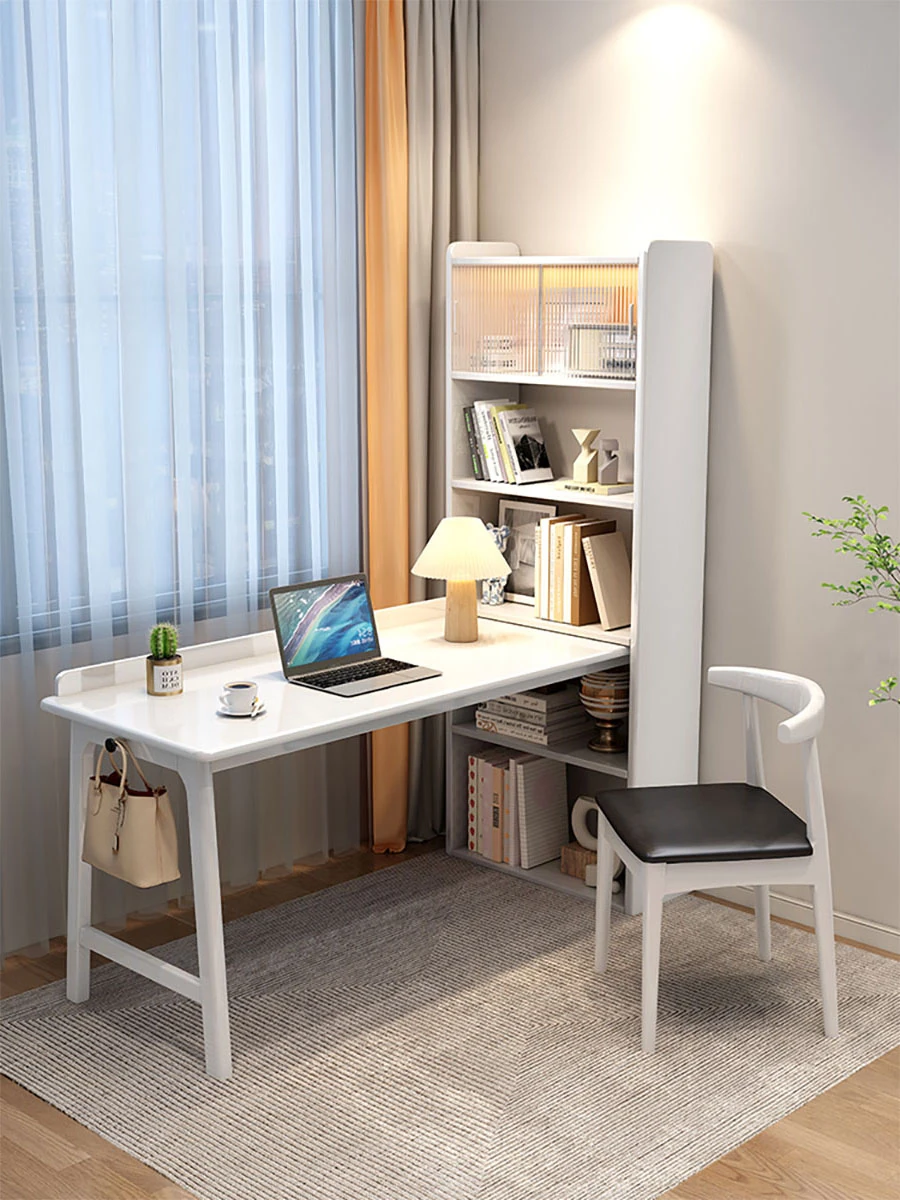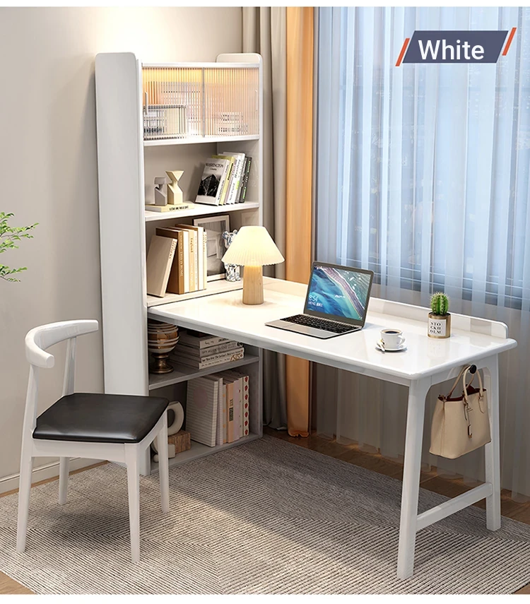CR4000# ivory white single table(The bookshelf can be exchanged left and right)
