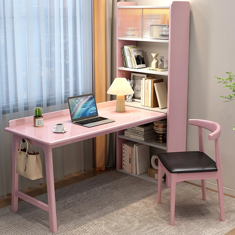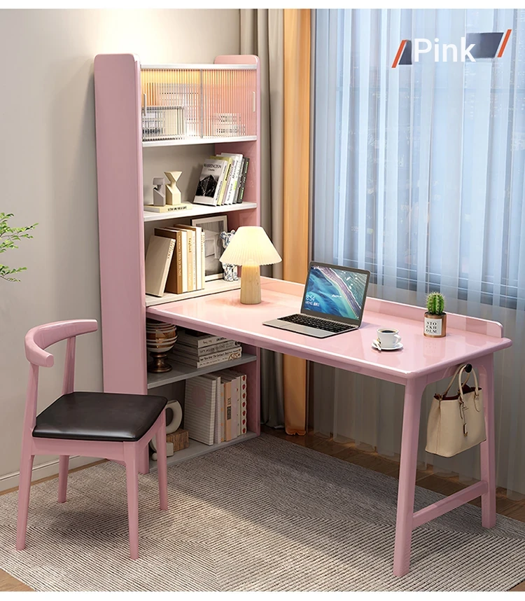 CR4000# pink and white single table(The bookshelf can be exchanged left and right)