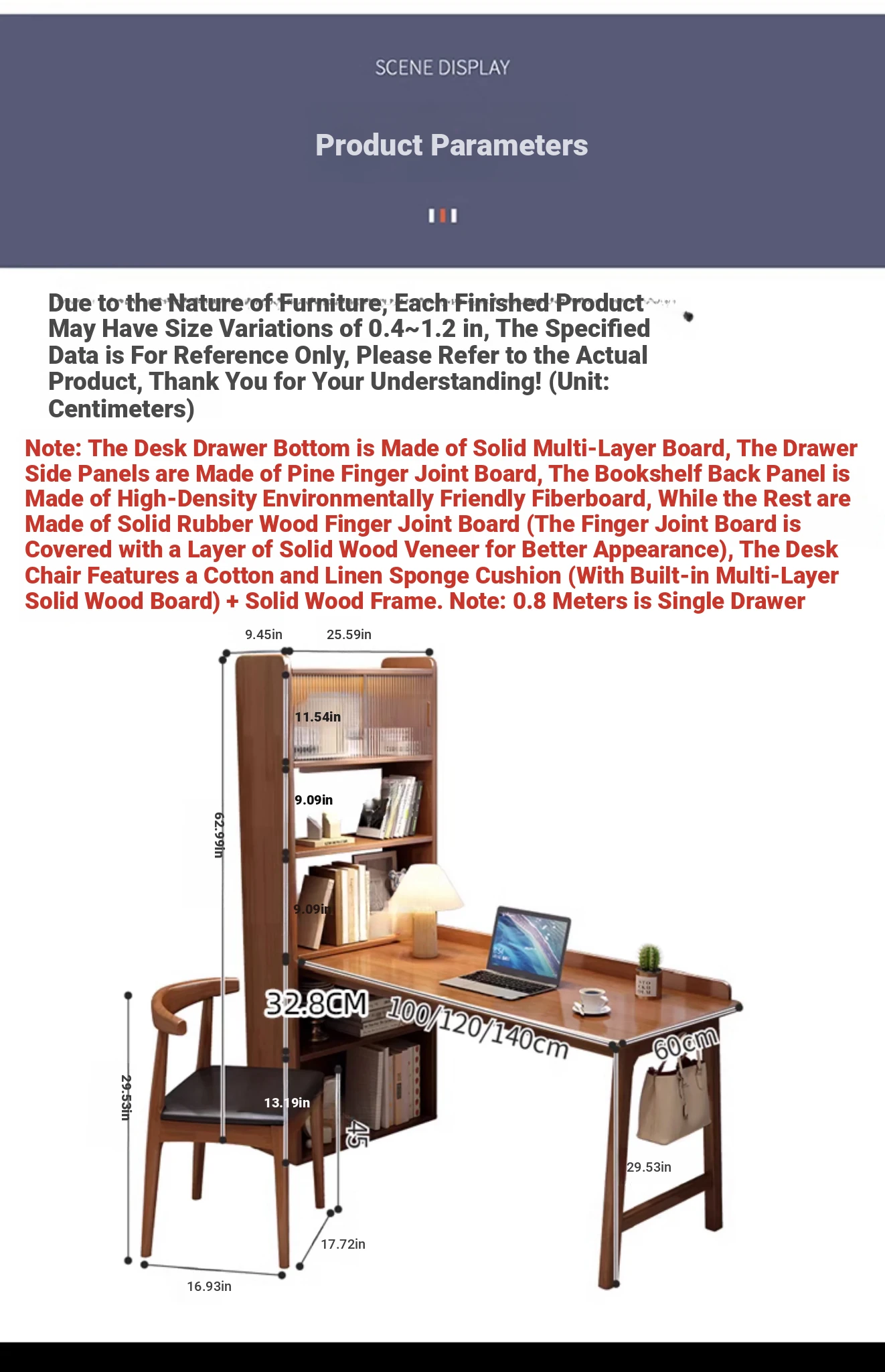 CR4000# log color single table(The bookshelf can be exchanged left and right)