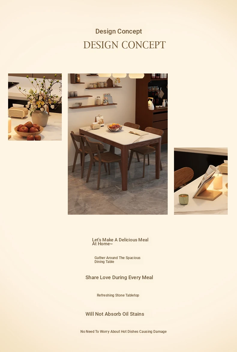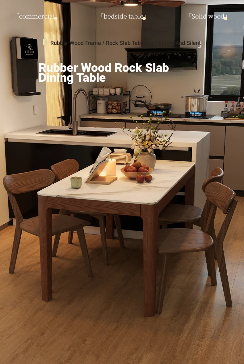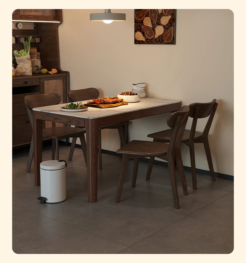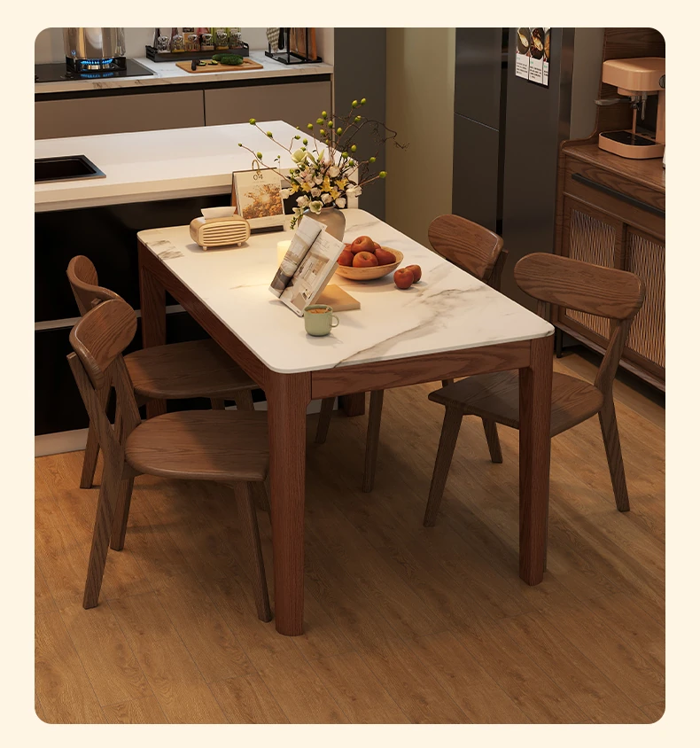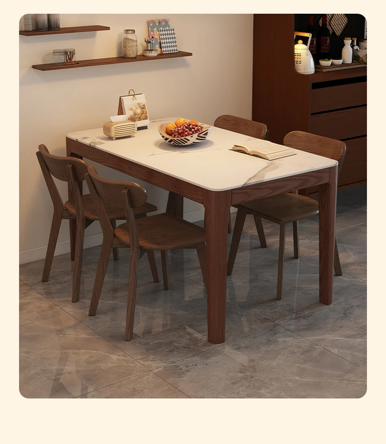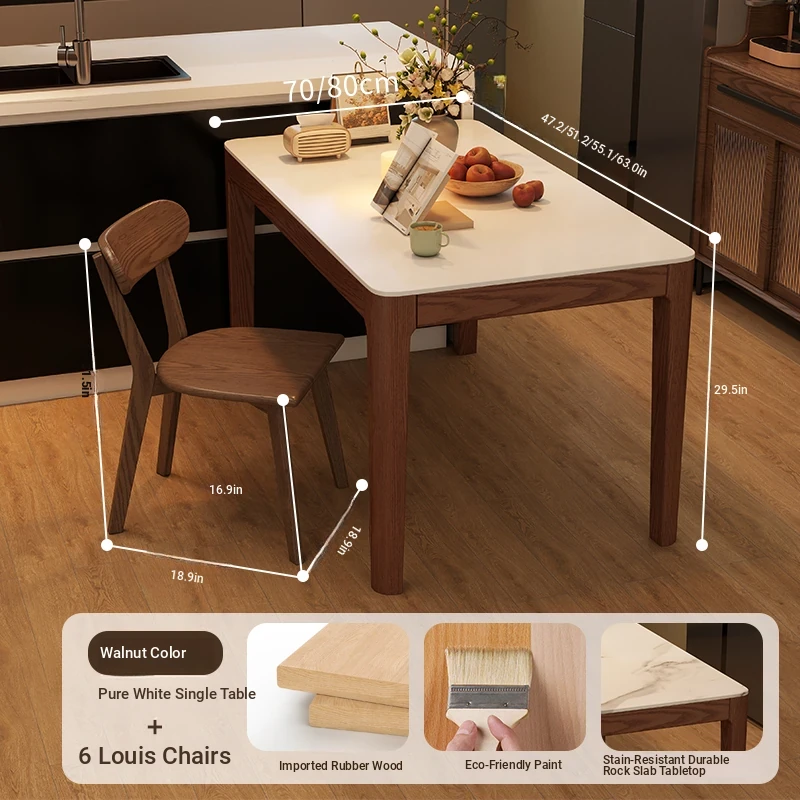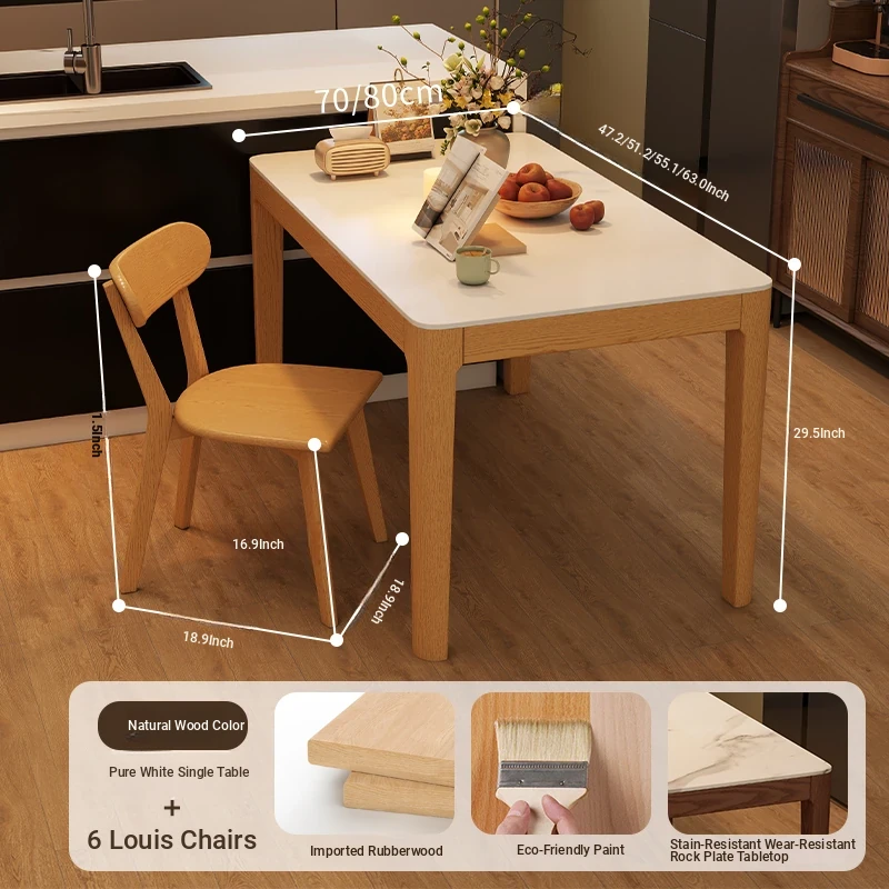 Original wood [single table + 6 chairs] - fish belly white rock board