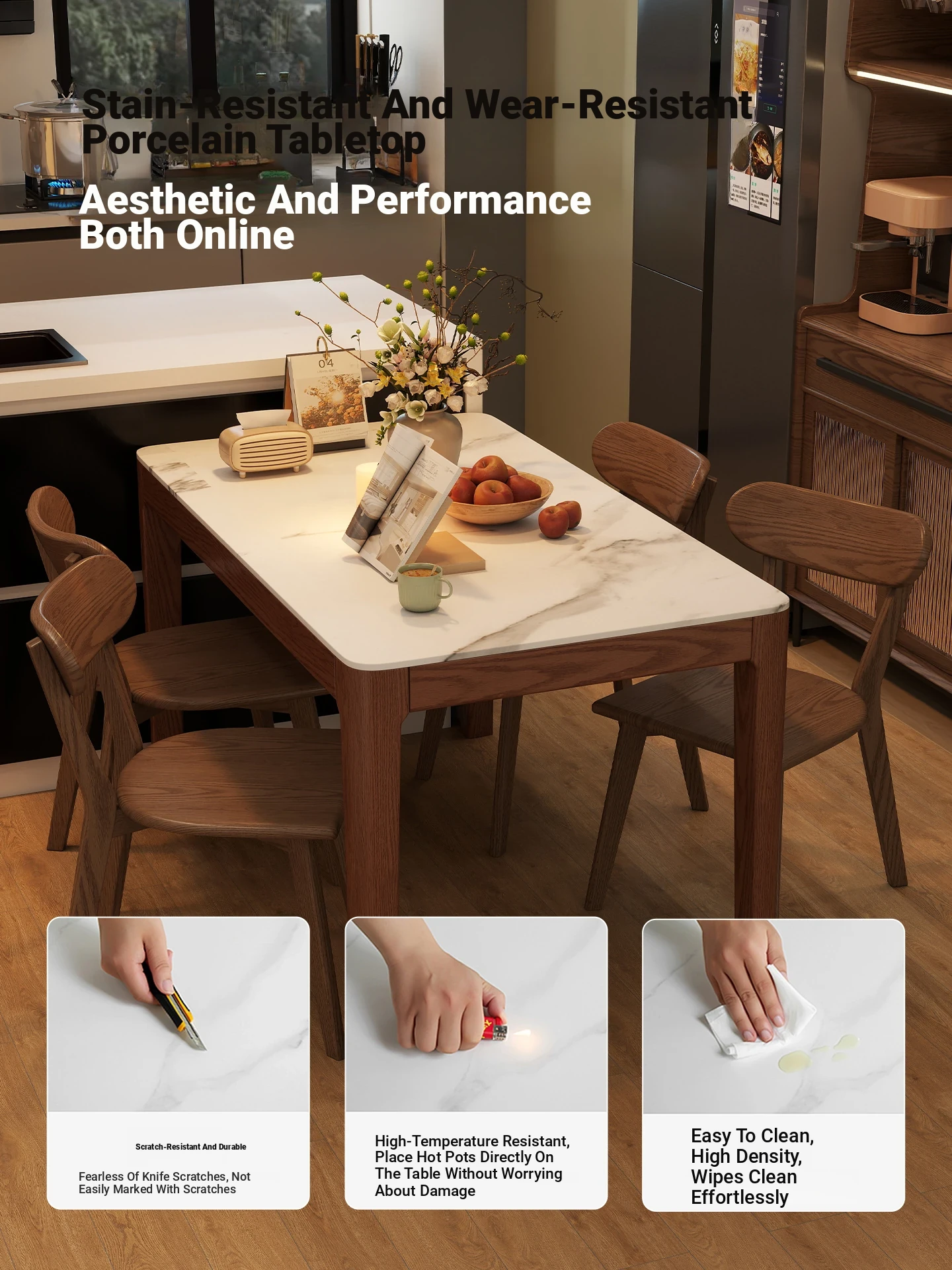 Modern Minimalist Solid Wood Dining Table and Chair Set - Nordic Style Rectangular Table for Small Spaces, Perfect for Home Dining Rooms
