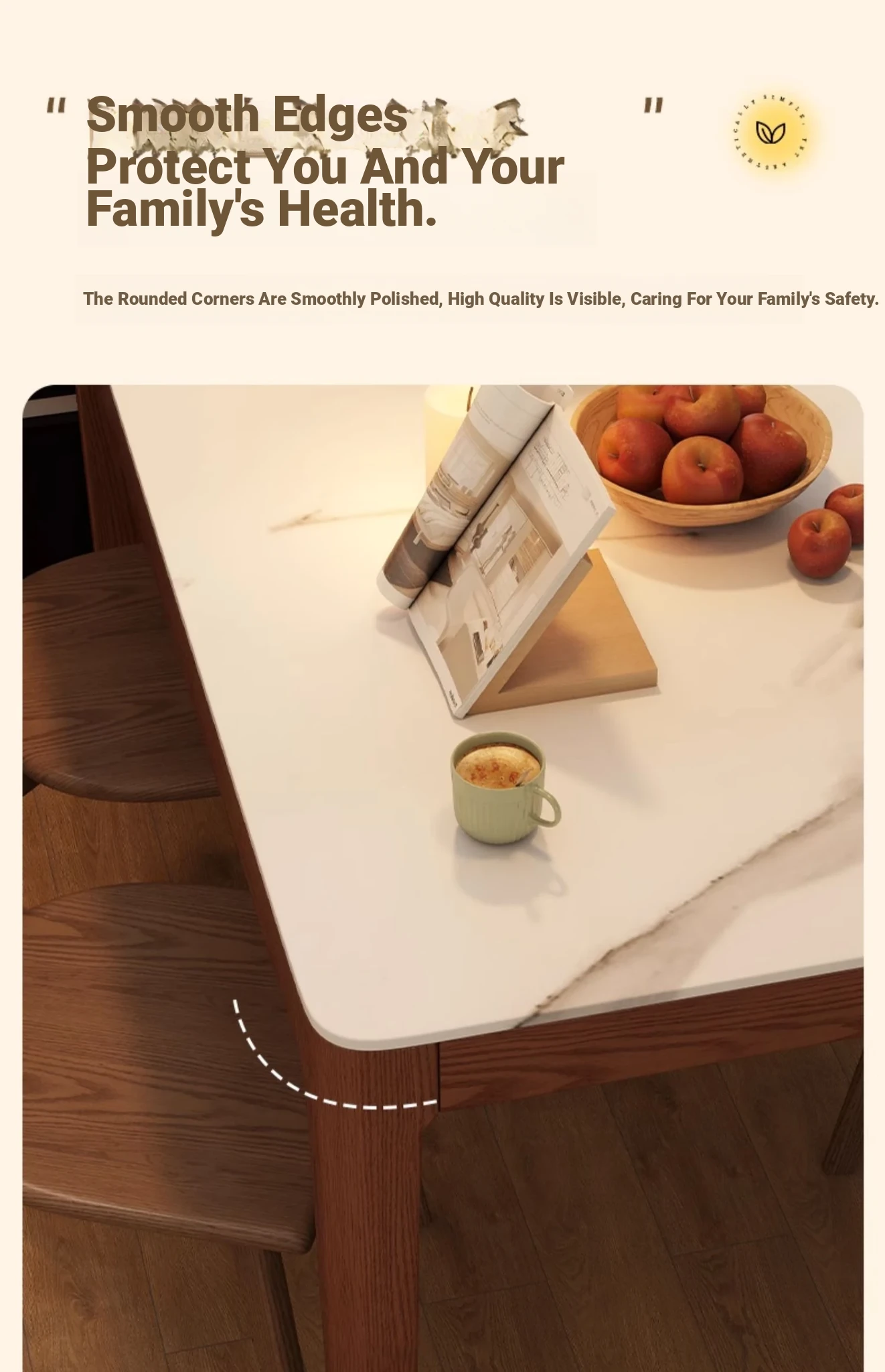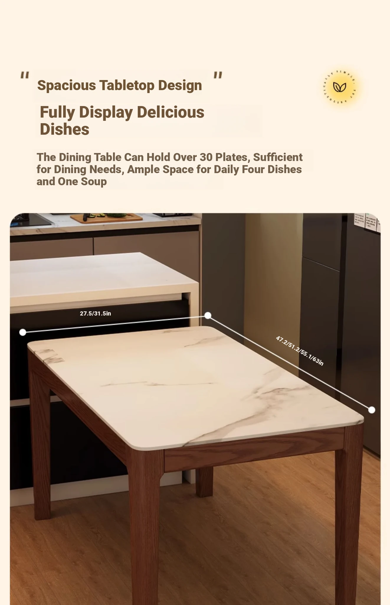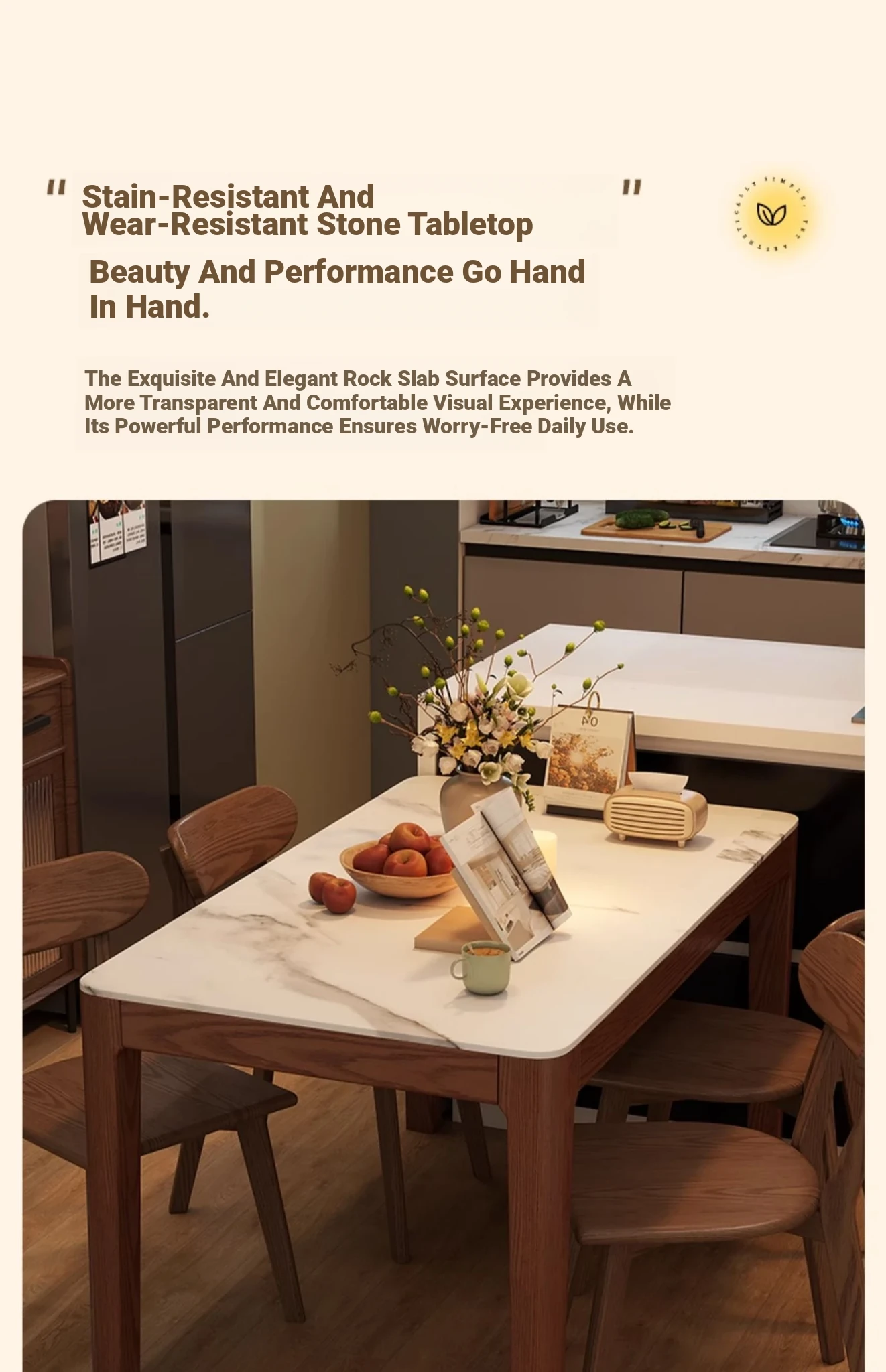 Peach Wood [Single Table + 6 Chairs] - Fish Belly White Rock Plate