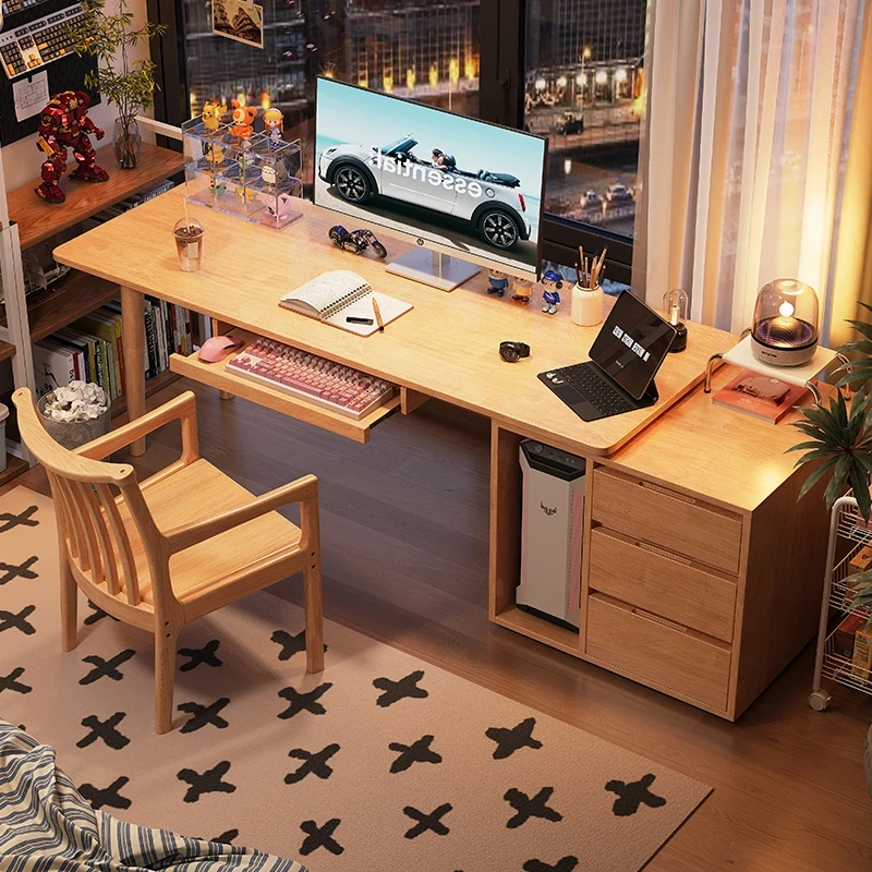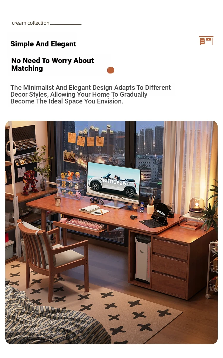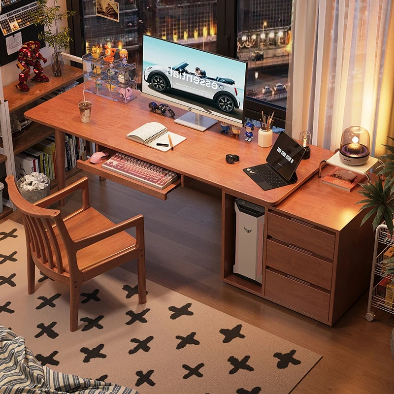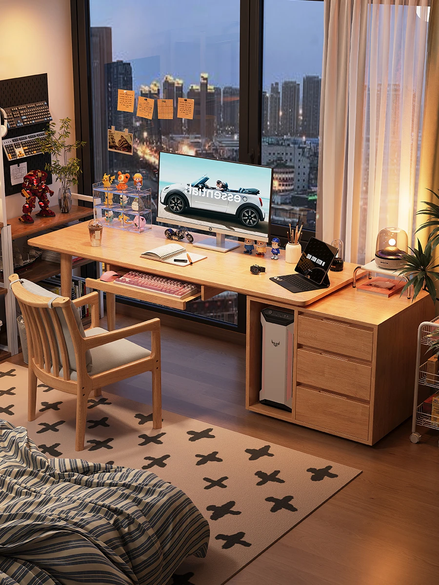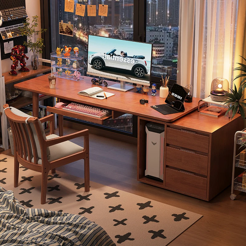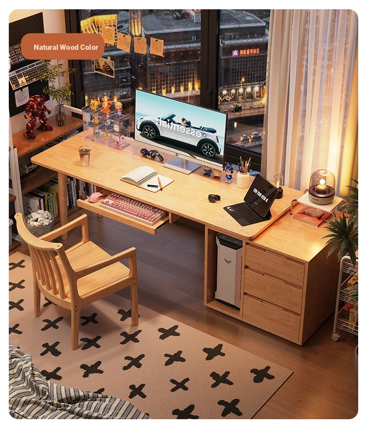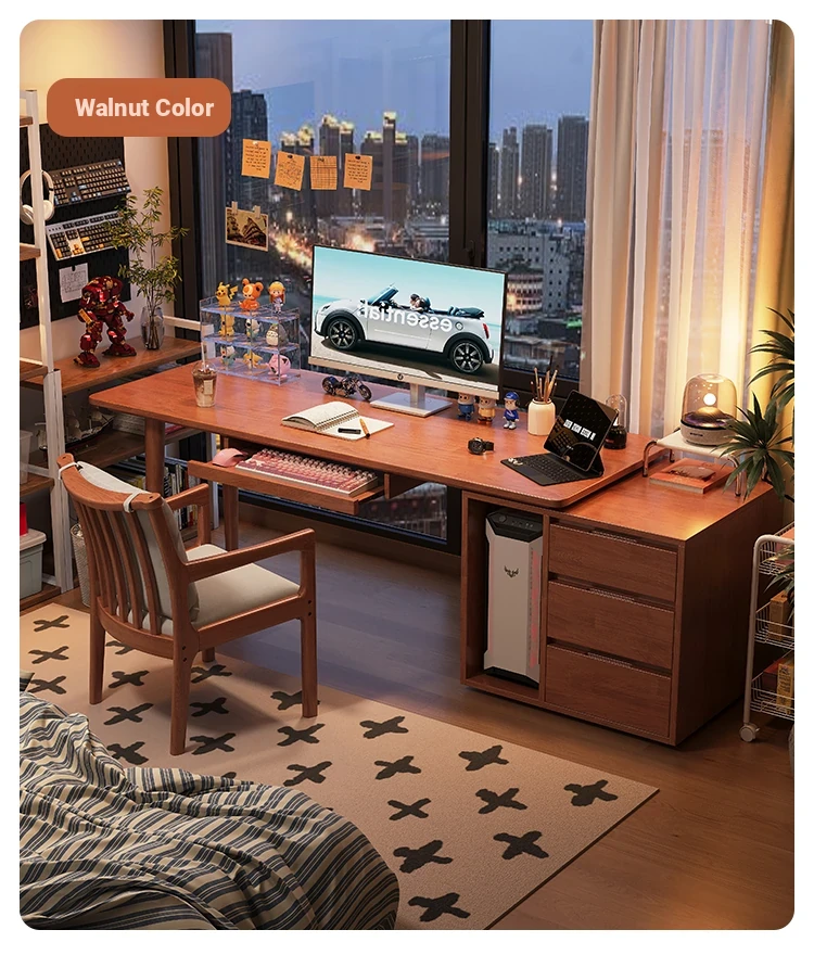 "Modern Solid Wood Desk and Drawer Combo – Space-Saving Expandable Corner Office Table for Small Apartments and Bedrooms - Perfect for Home Use and Stylish Workspaces"