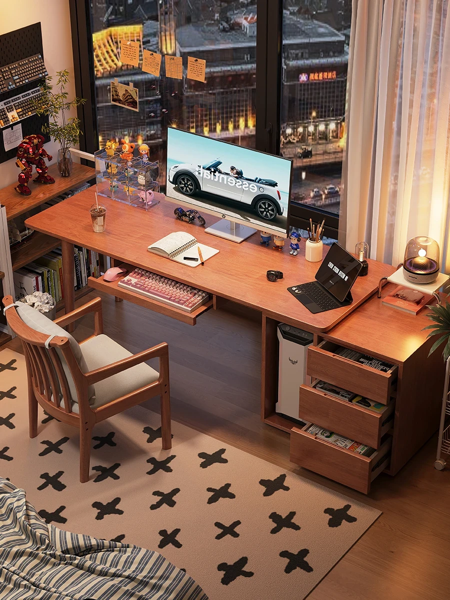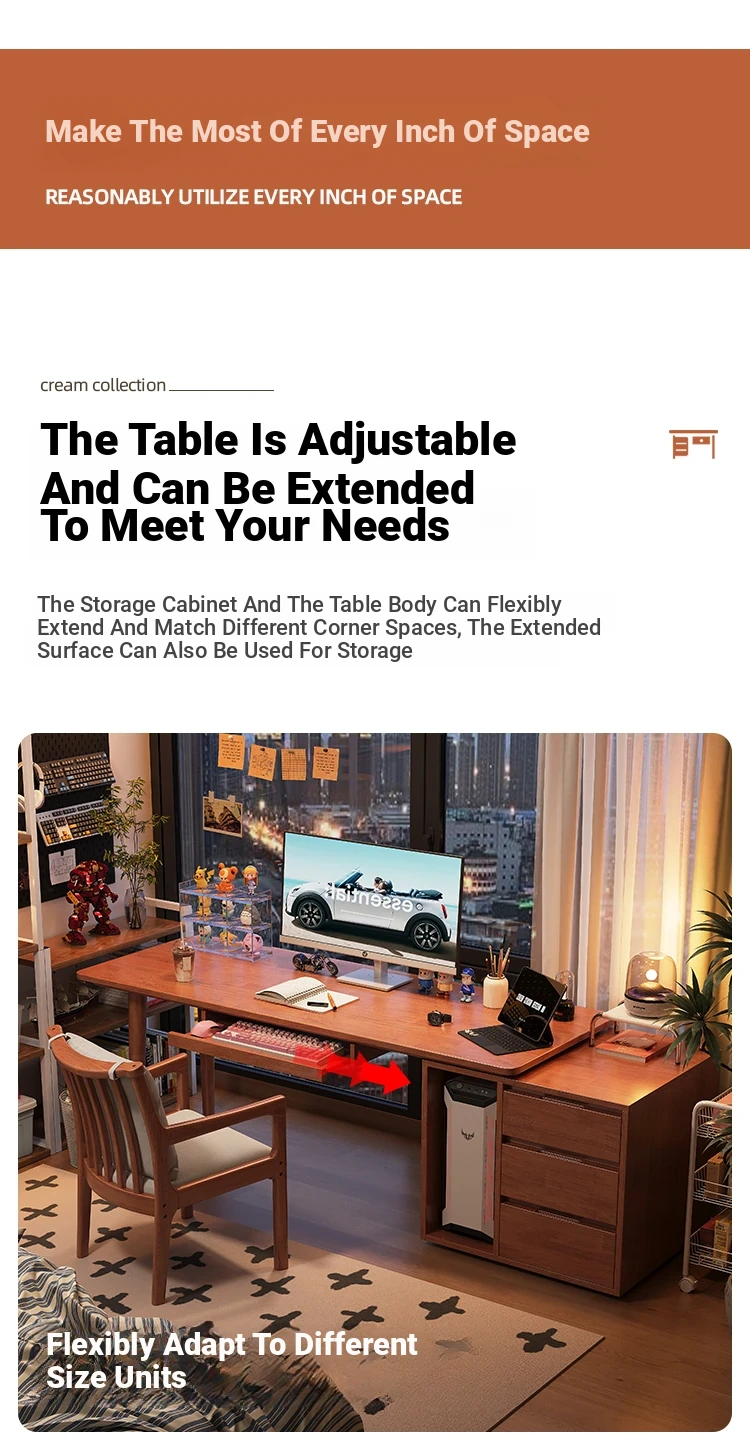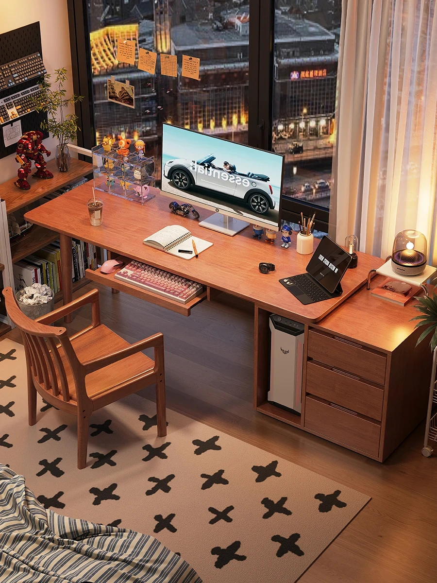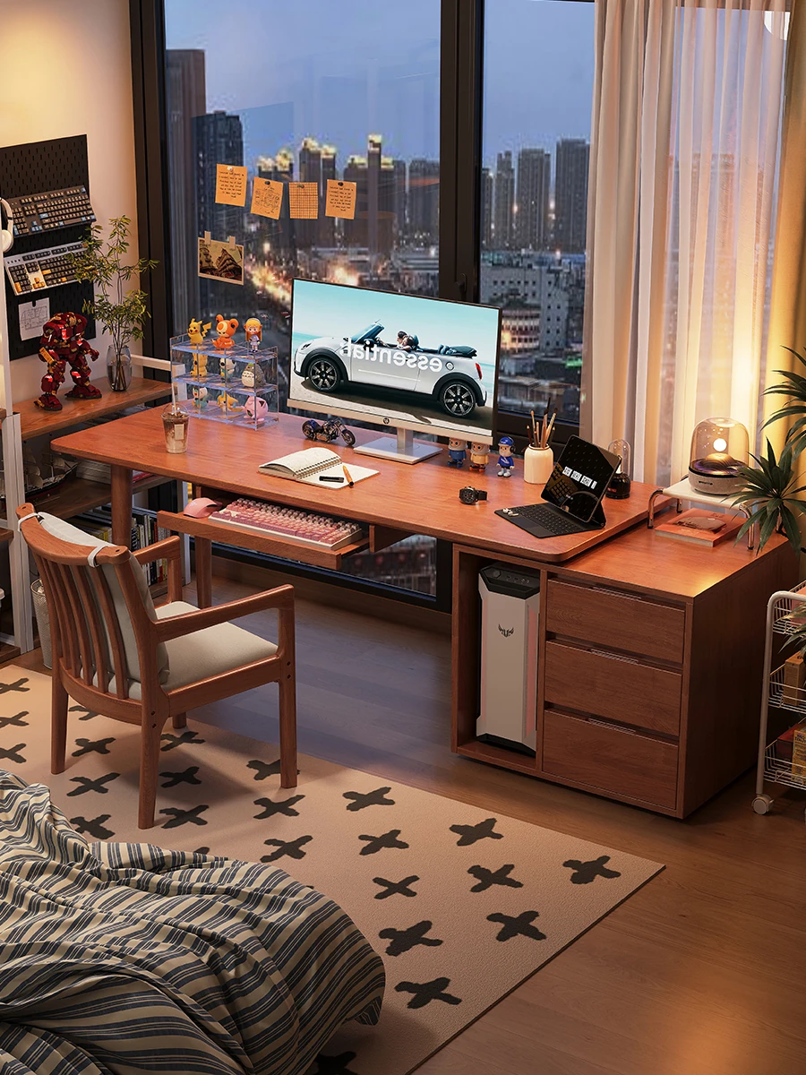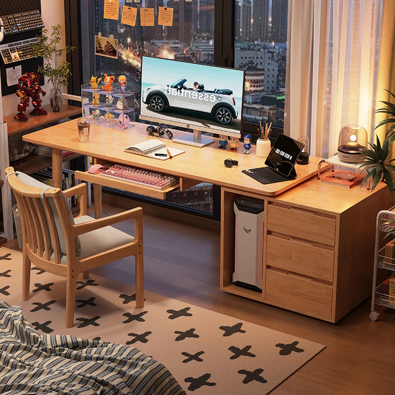 "Modern Solid Wood Desk and Drawer Combo – Space-Saving Expandable Corner Office Table for Small Apartments and Bedrooms - Perfect for Home Use and Stylish Workspaces"