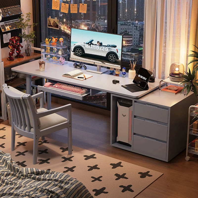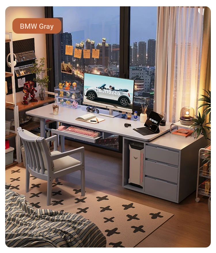 FJX923C with keyboard Holder# BMW gray table + side cabinet([Import rubber Wood ● Do not make skin boards]])
