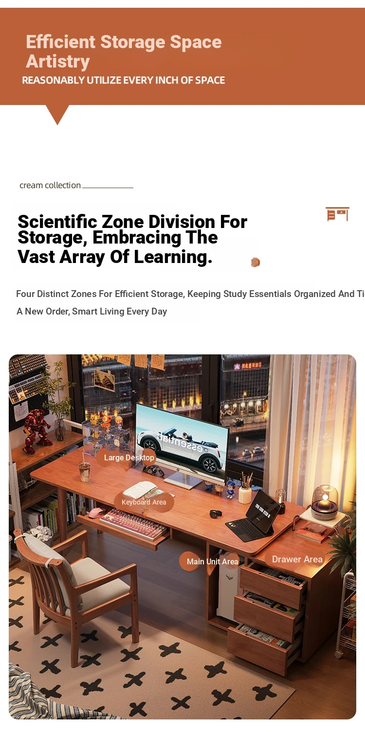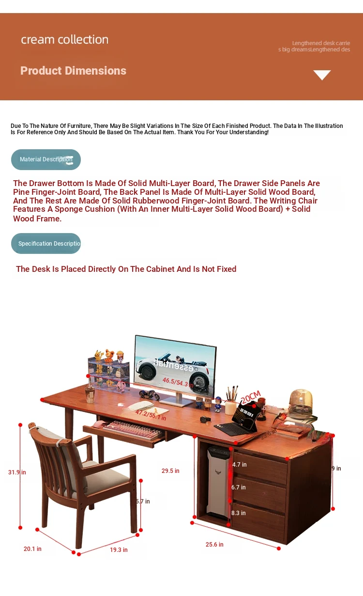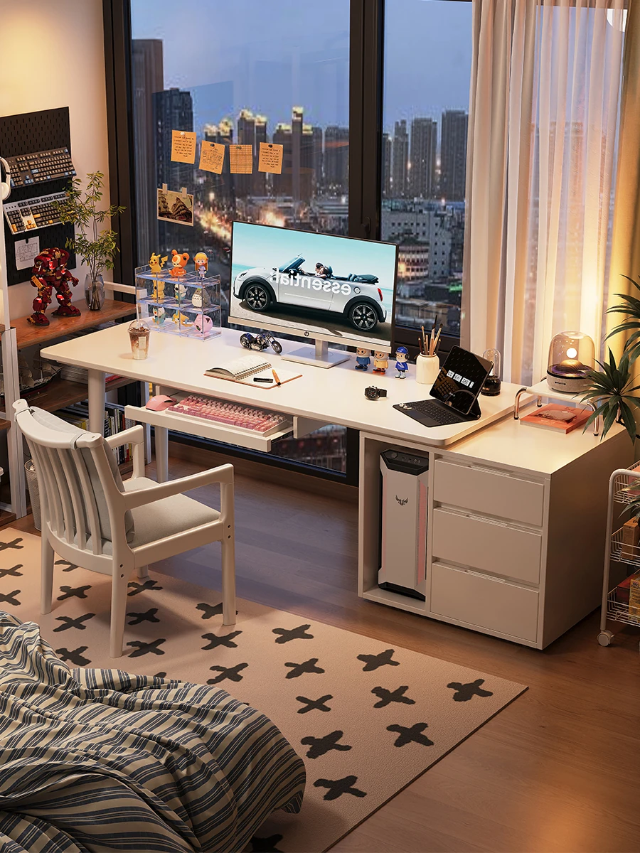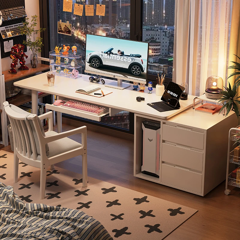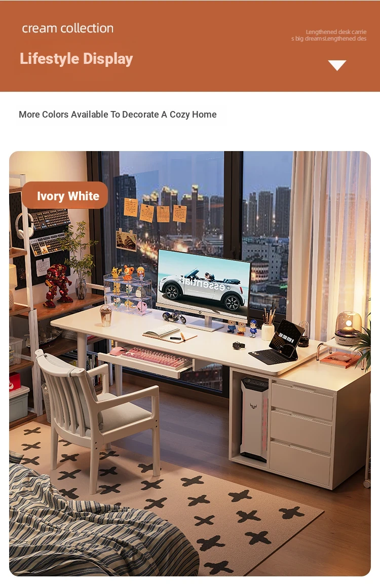 FJX923C with keyboard Holder# ivory white table + side cabinet([Import rubber Wood ● Do not make skin boards]])