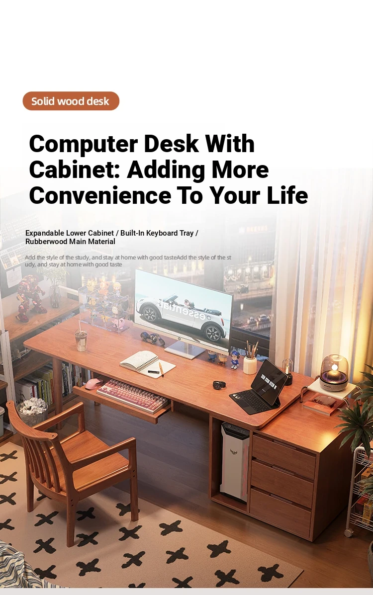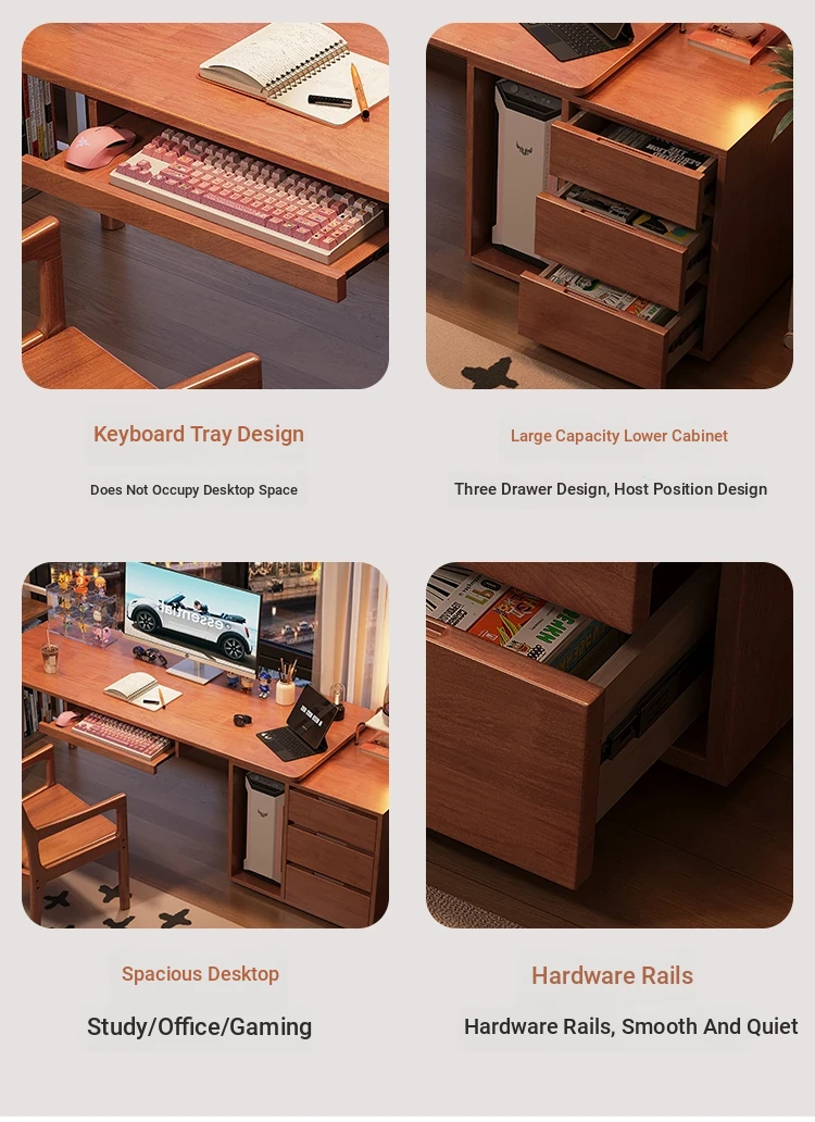 FJX923C with keyboard Holder# walnut color table + side cabinet([Import rubber Wood ● Do not make skin boards]])