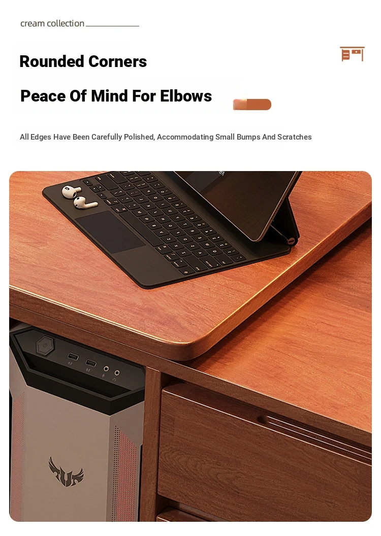 FJX923C with keyboard Holder# log color table + side cabinet([Import rubber Wood ● Do not make skin boards]])