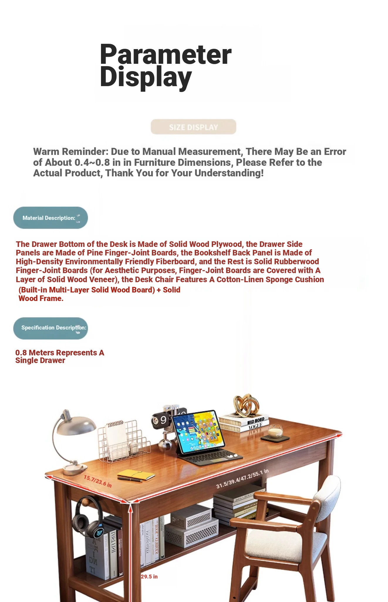 Solid Wood Desk - Compact 40/60CM Computer Table for Home & Office, Ideal for Small Spaces and Students' Study Needs
