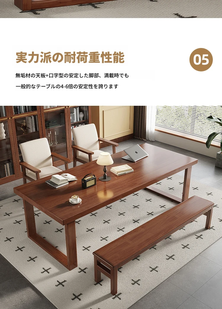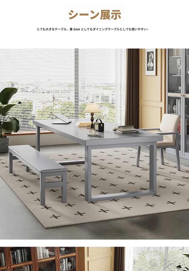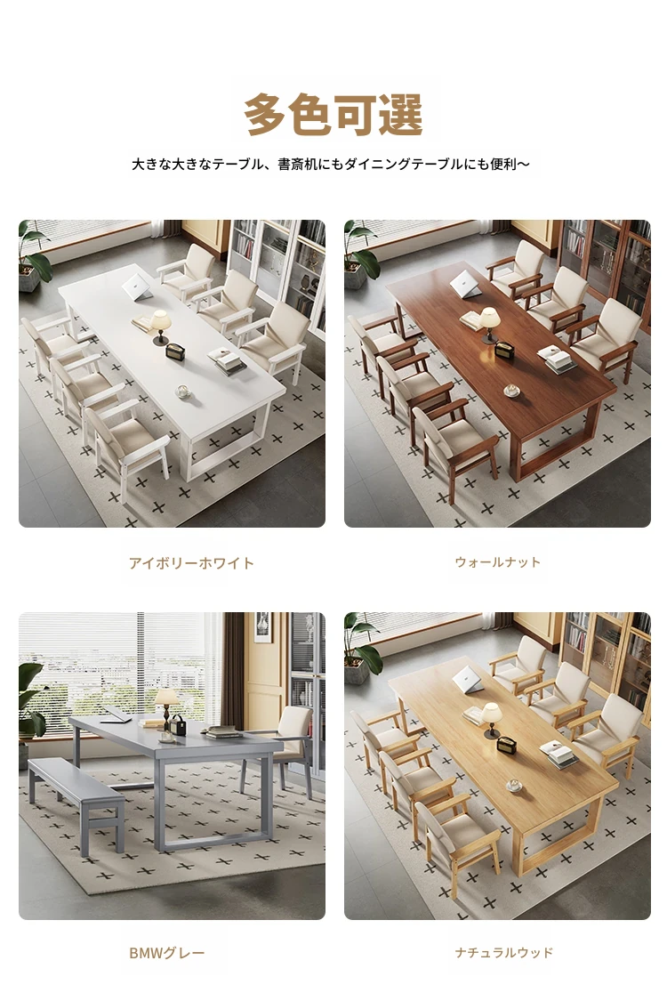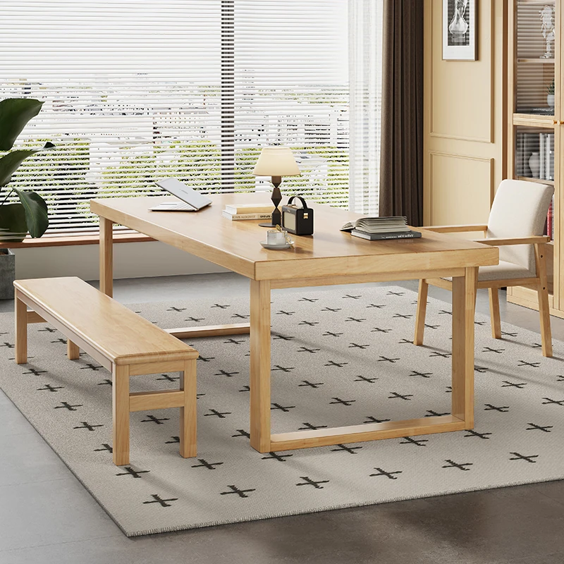 モビーン天然木製シンプルデザイン!幅広い活用!実木製ダイニング&デスクテーブル - 家庭用リビングに最適な長方形多用途テーブル(大人数学習対応)。