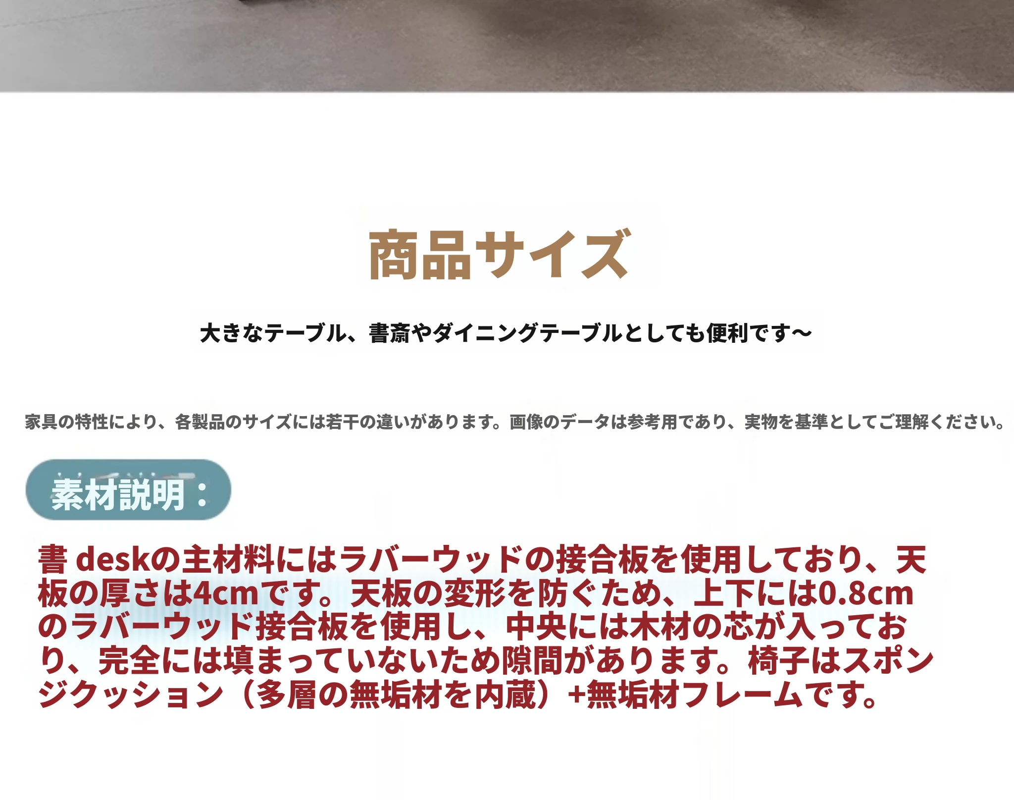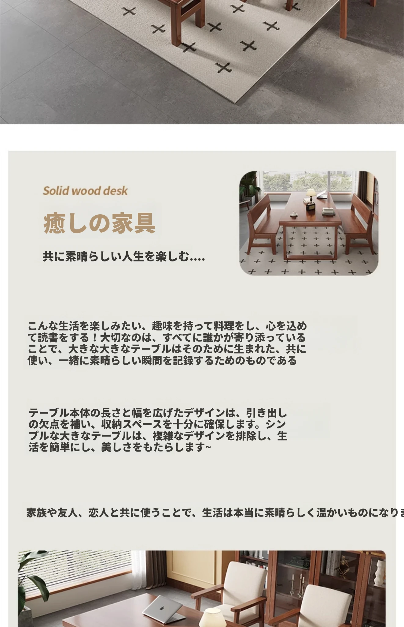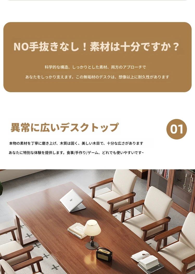 モビーン天然木製シンプルデザイン!幅広い活用!実木製ダイニング&デスクテーブル - 家庭用リビングに最適な長方形多用途テーブル(大人数学習対応)。