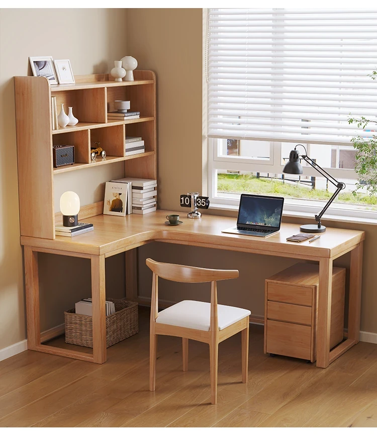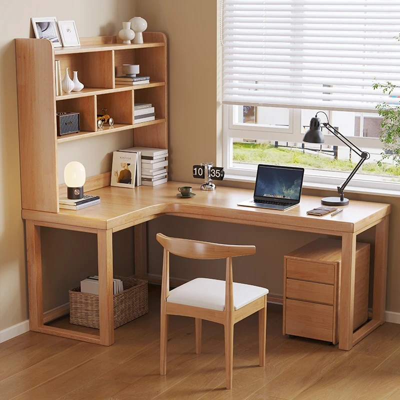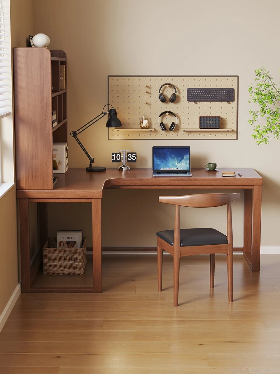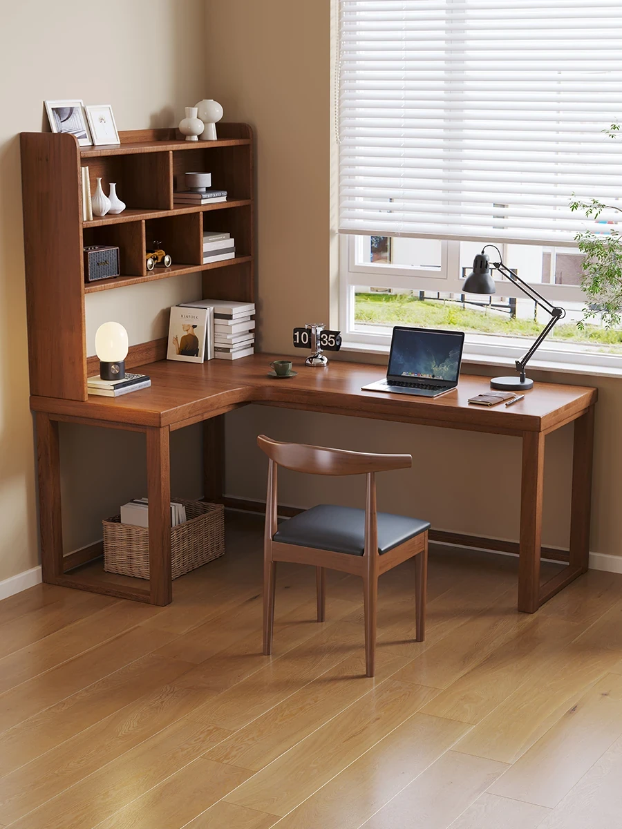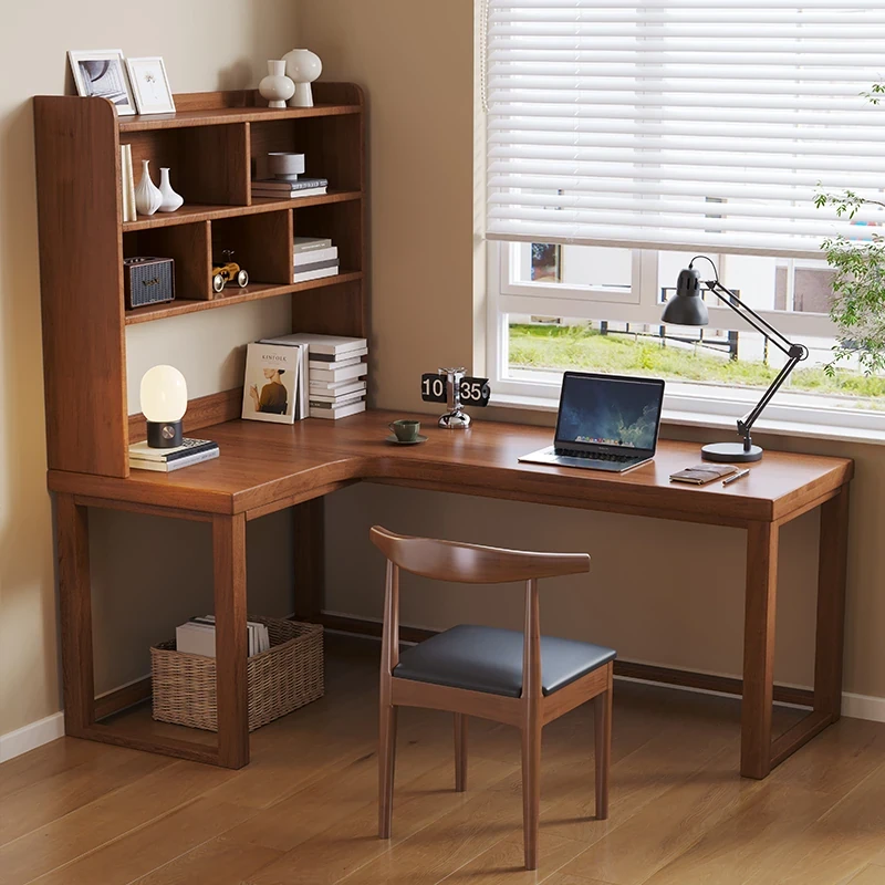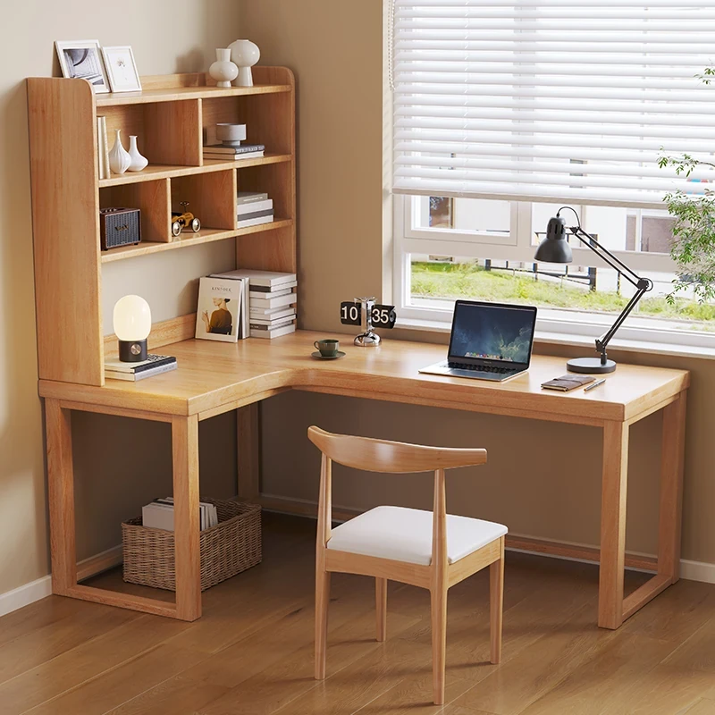 "Solid Wood L-Shaped Corner Desk for Home - Stylish and Functional Double Workspace for Two, Perfect for Study and Office Use"