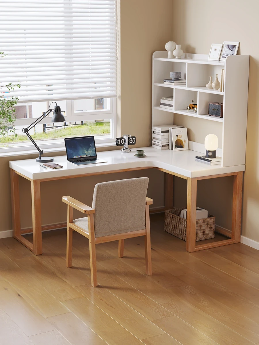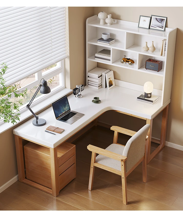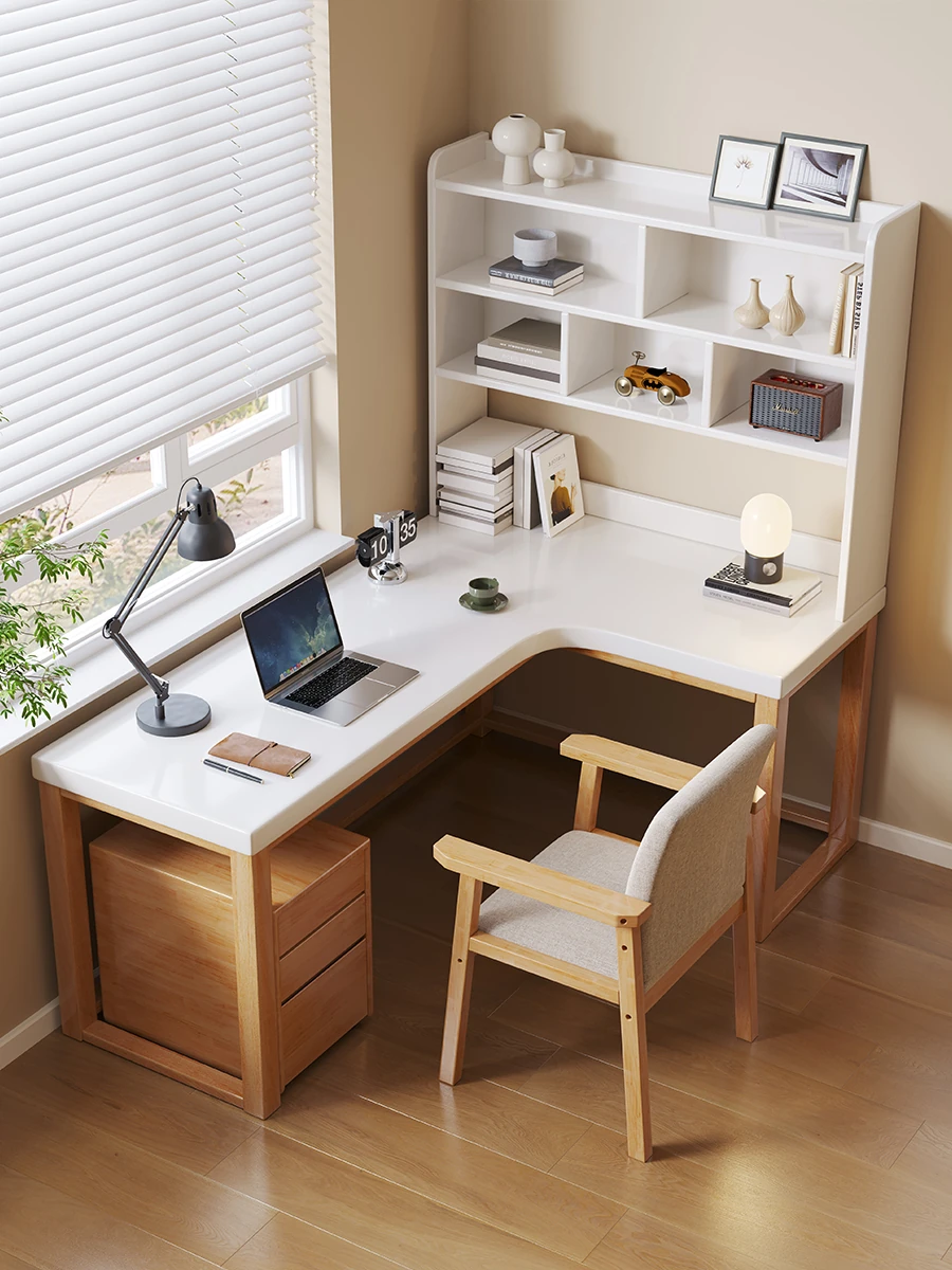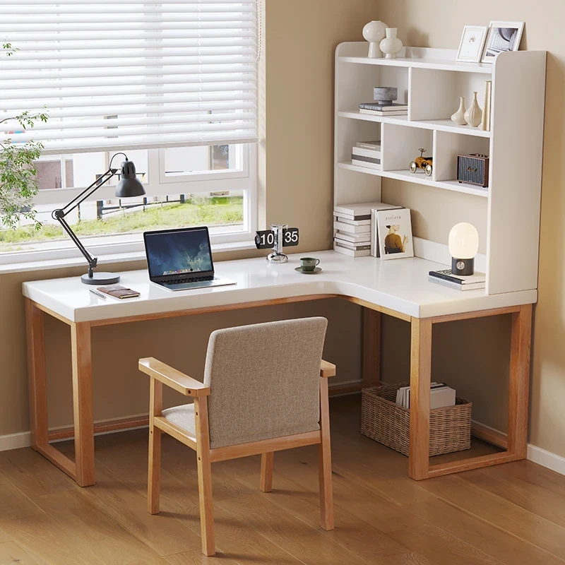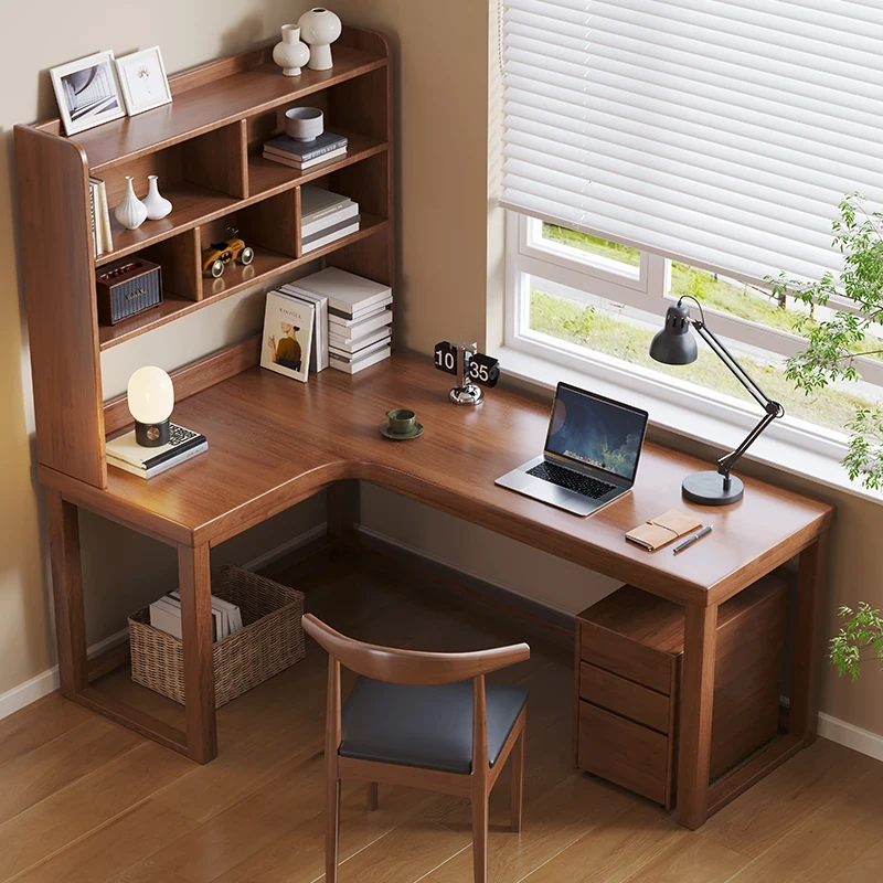 "Solid Wood L-Shaped Corner Desk for Home - Stylish and Functional Double Workspace for Two, Perfect for Study and Office Use"