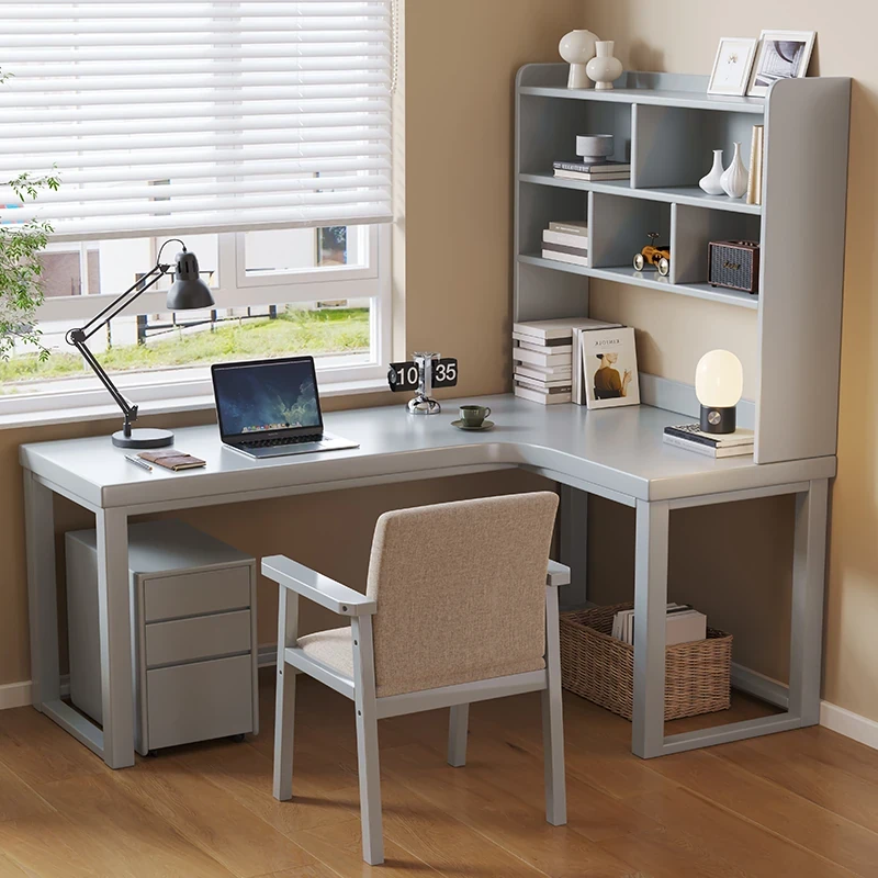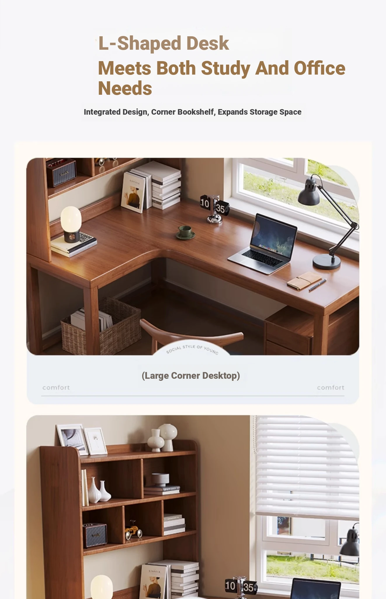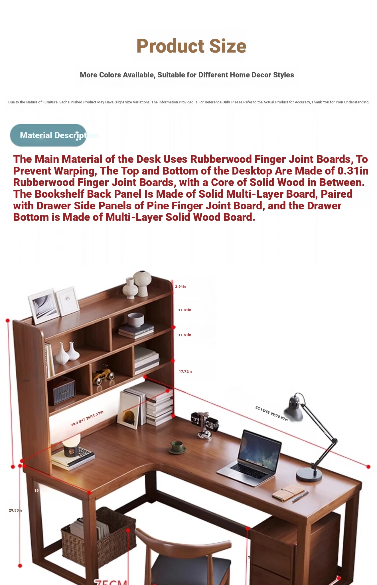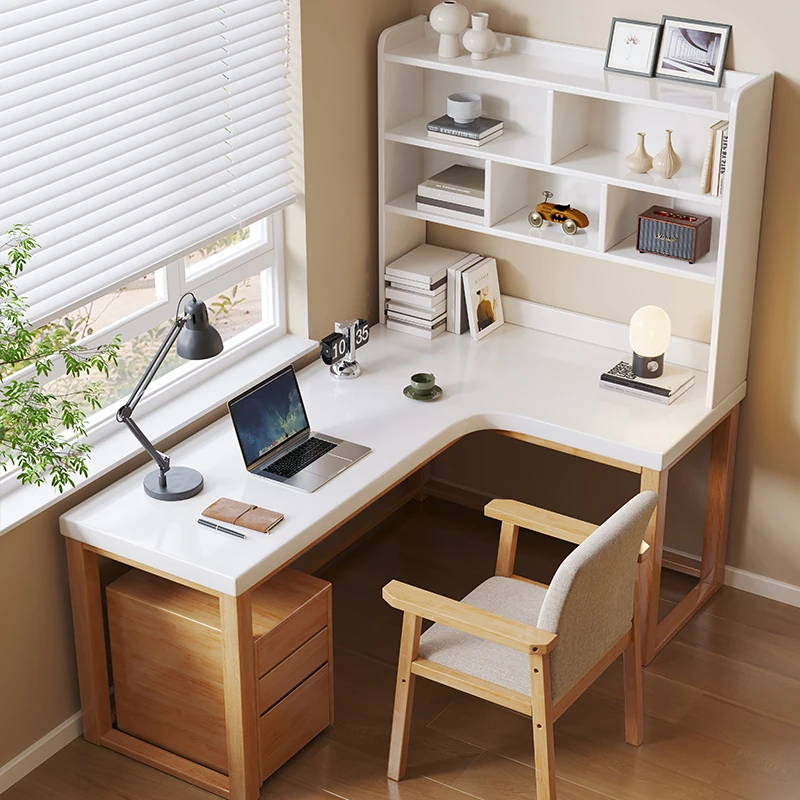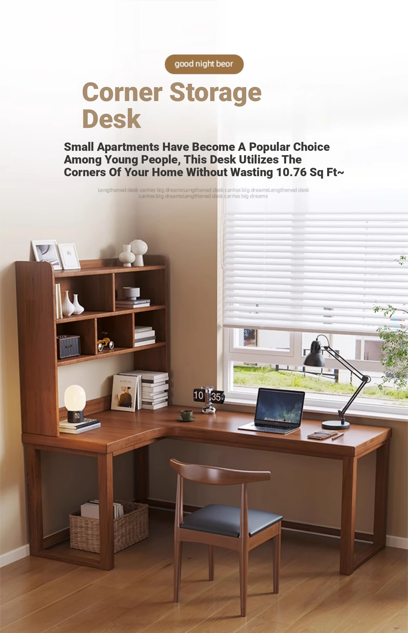 "Solid Wood L-Shaped Corner Desk for Home - Stylish and Functional Double Workspace for Two, Perfect for Study and Office Use"