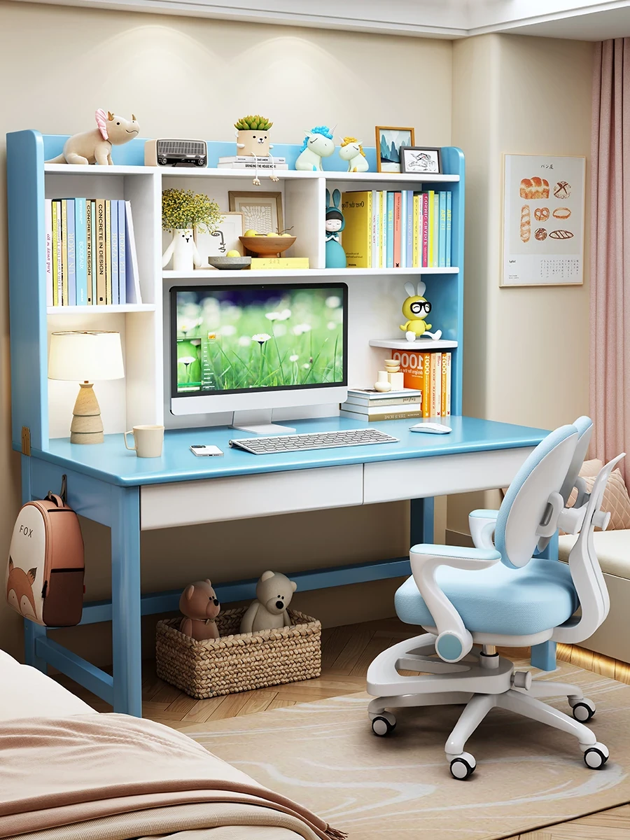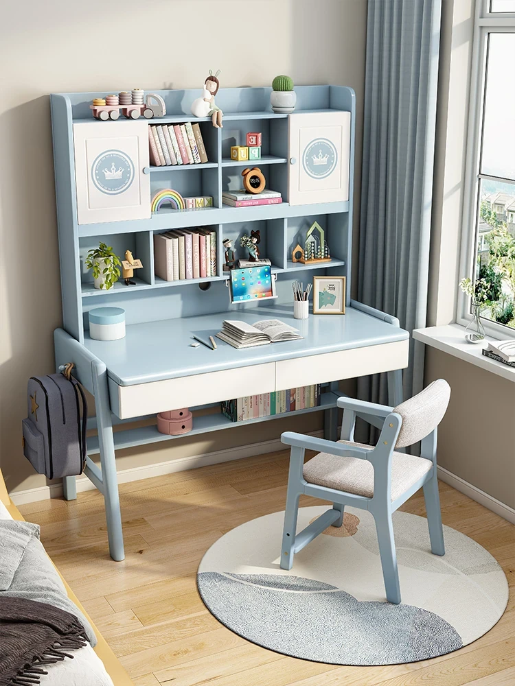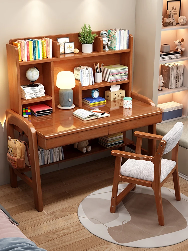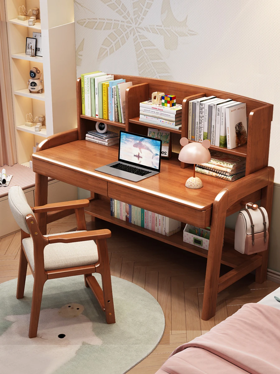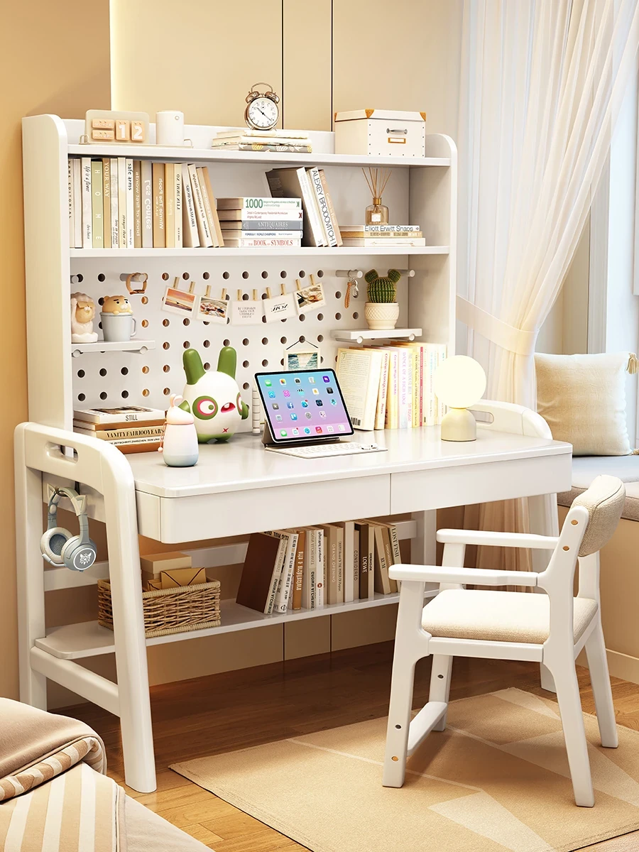 Solid Wood Pegboard Study Desk with Adjustable Height - Perfect for Children's Bedrooms, Ideal for Learning and Homework, Includes Bookshelf & Computer Desk Features