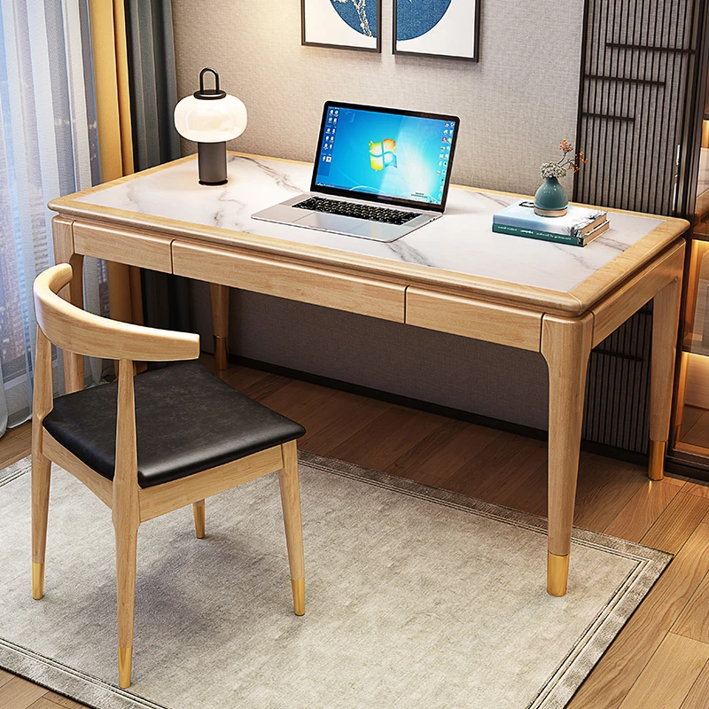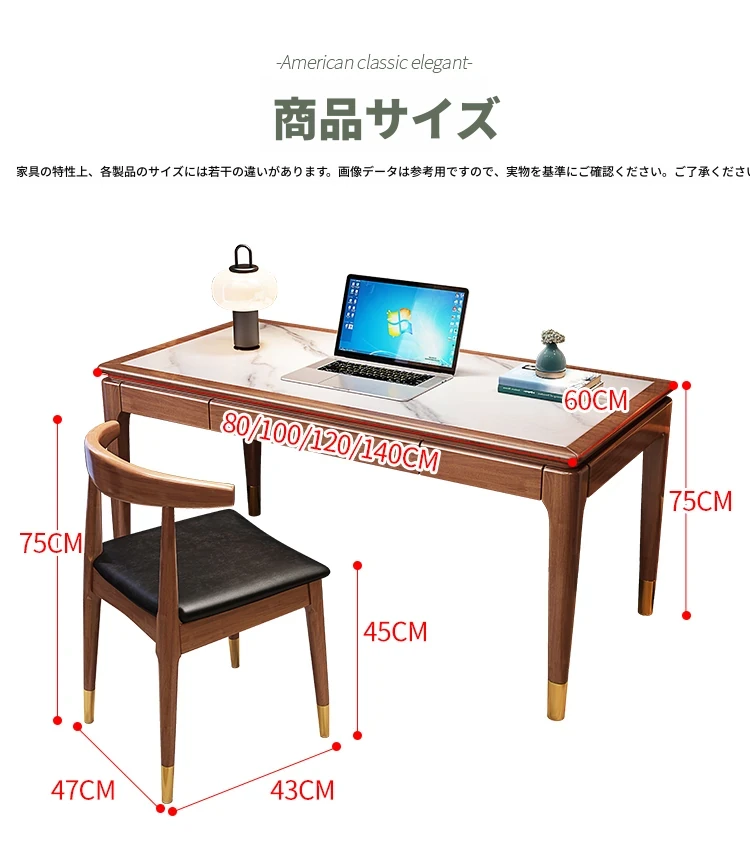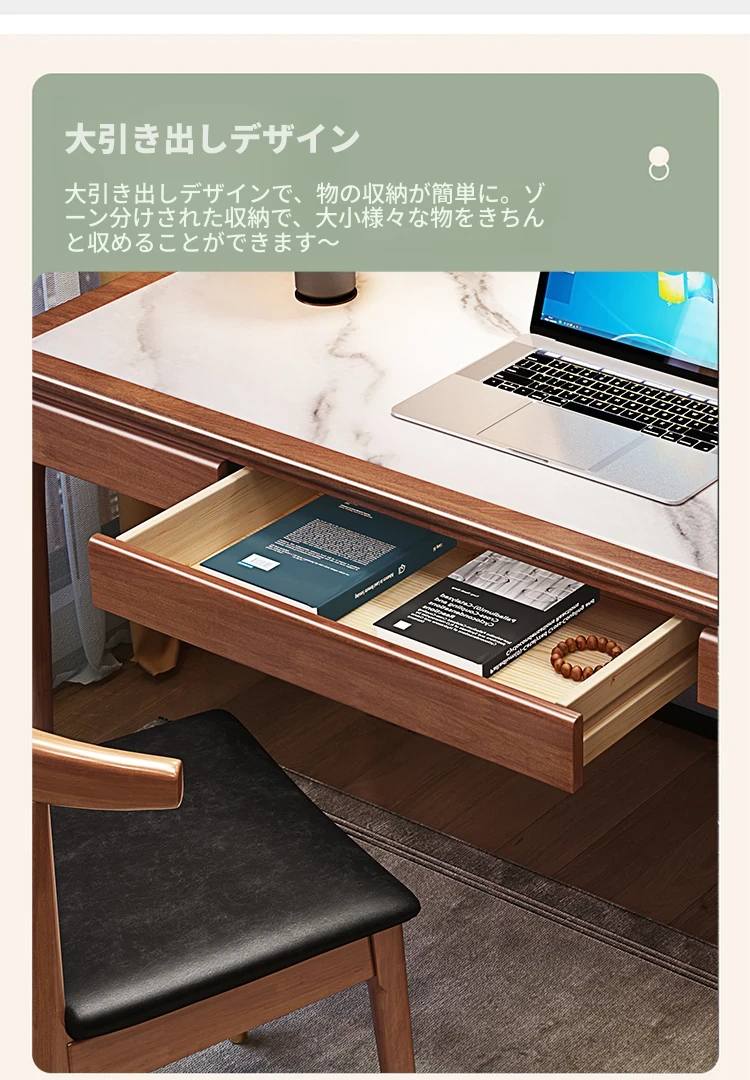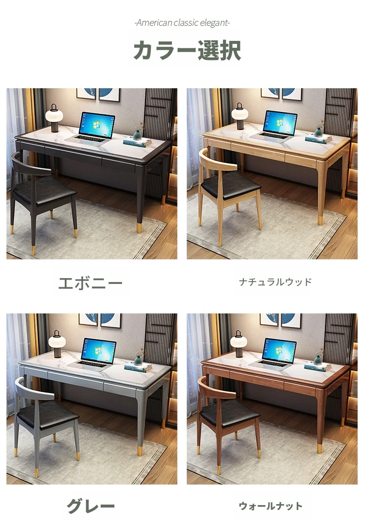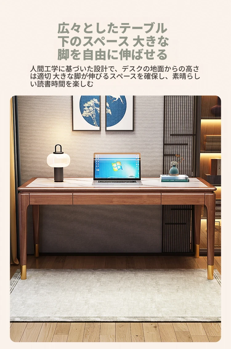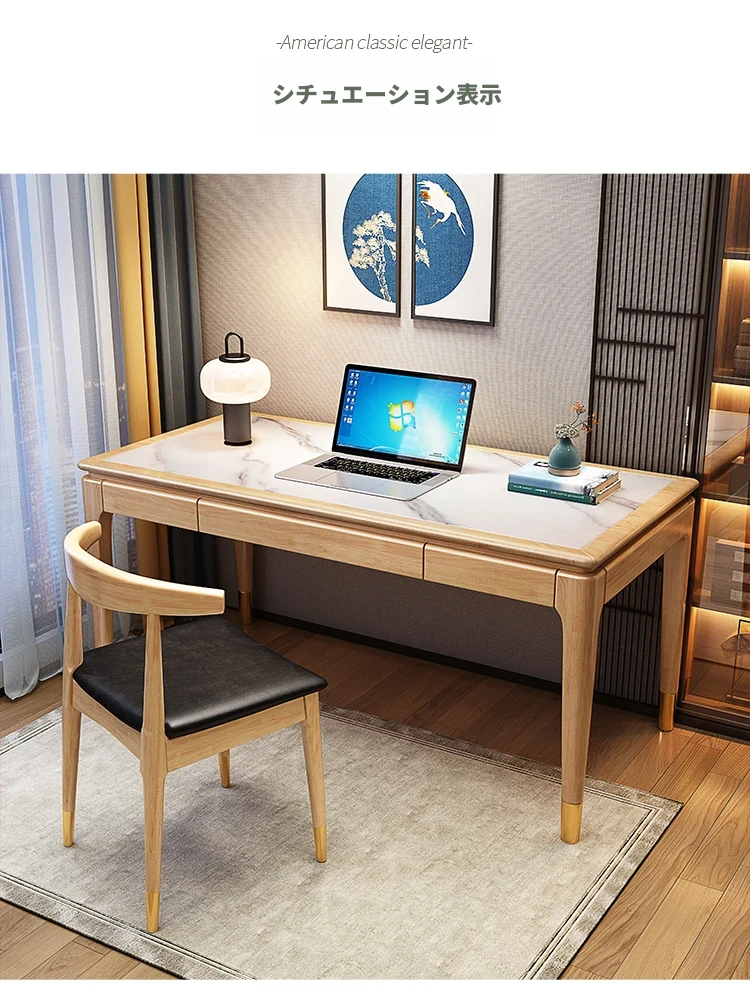 高級感あふれる無垢材使用のモダン中式パソコンデスク - シンプルでおしゃれなオフィスデスク、学習にも最適!子供用勉強机としても大活躍!