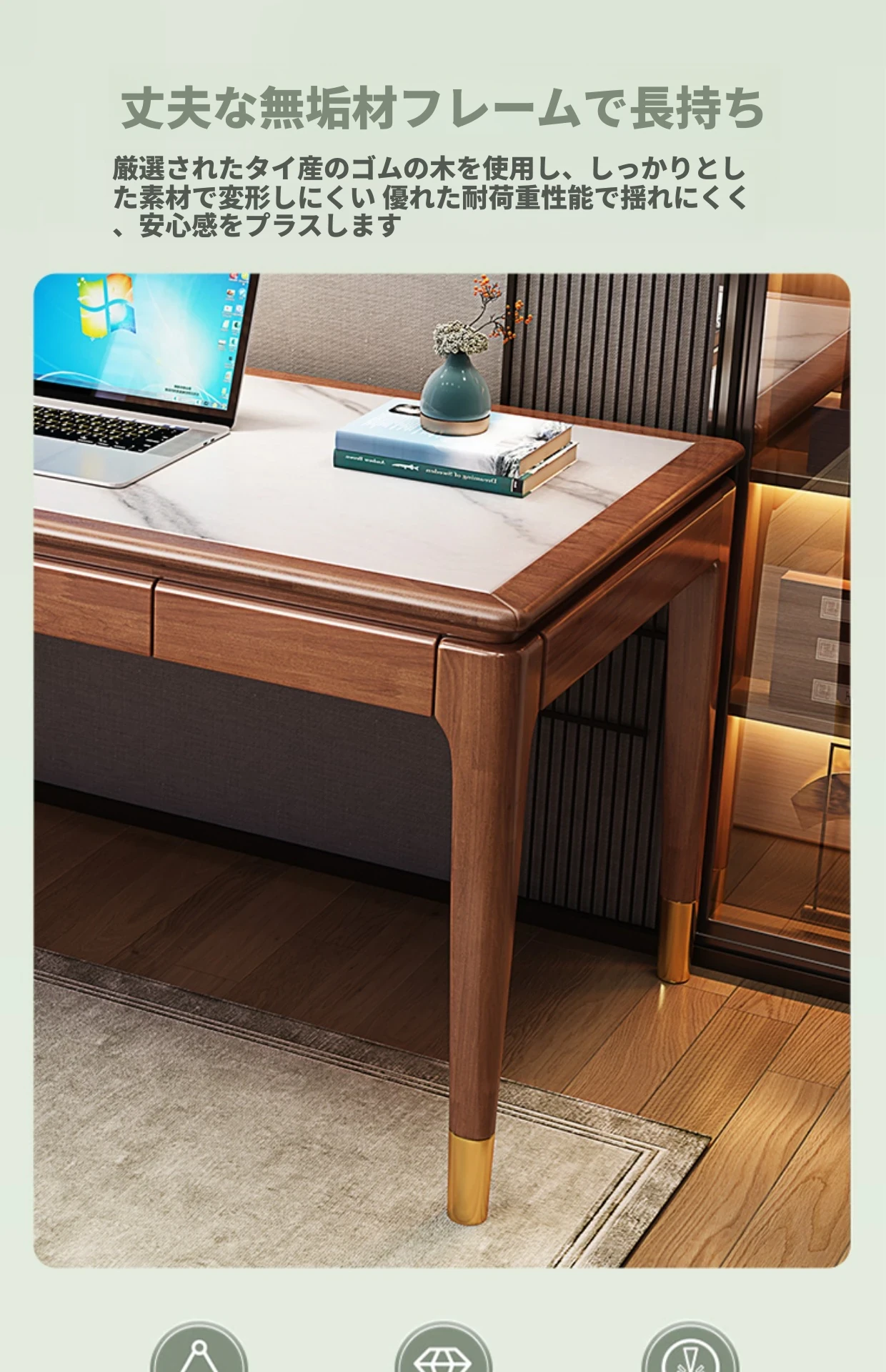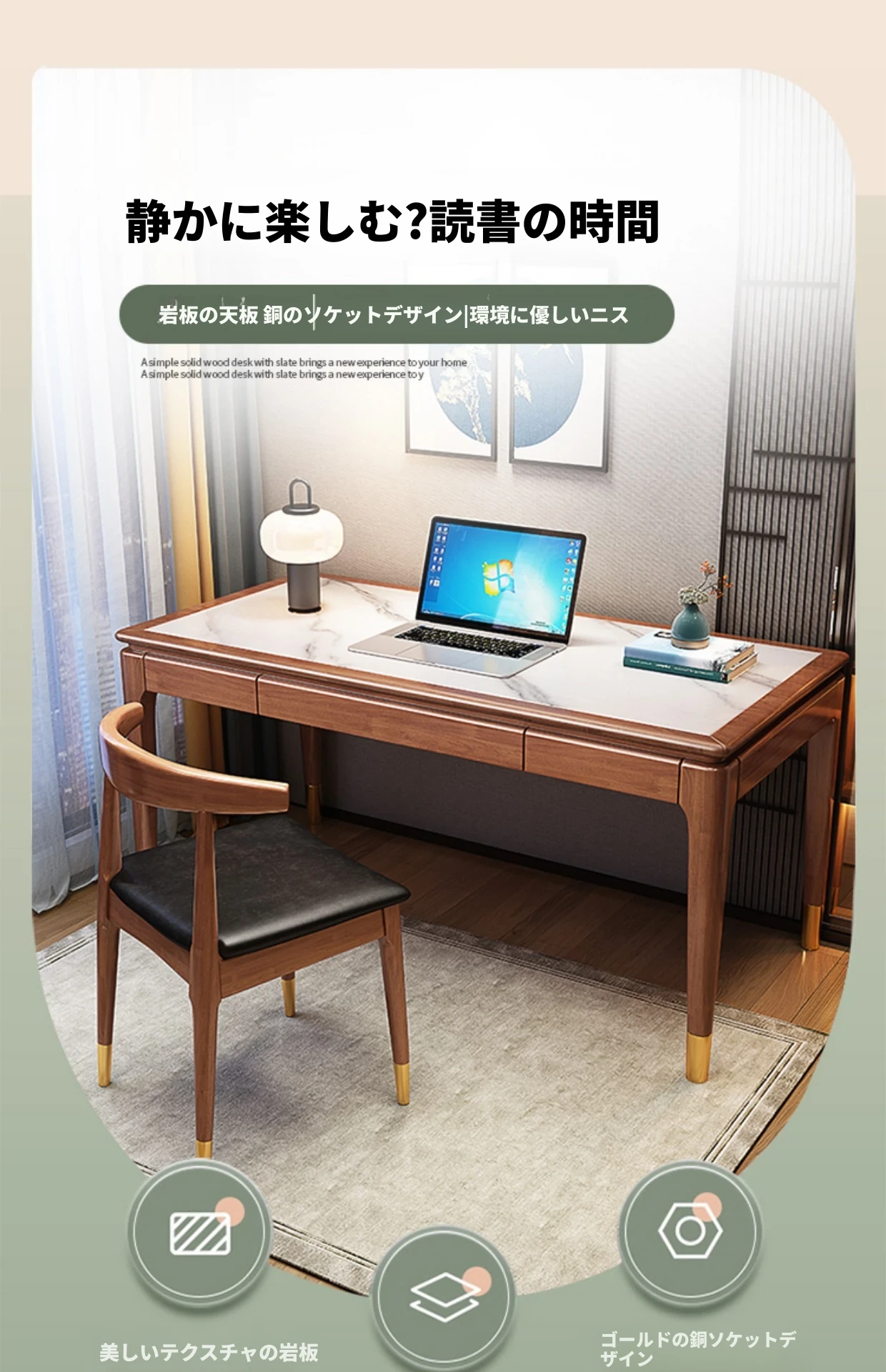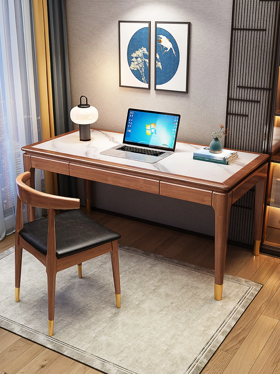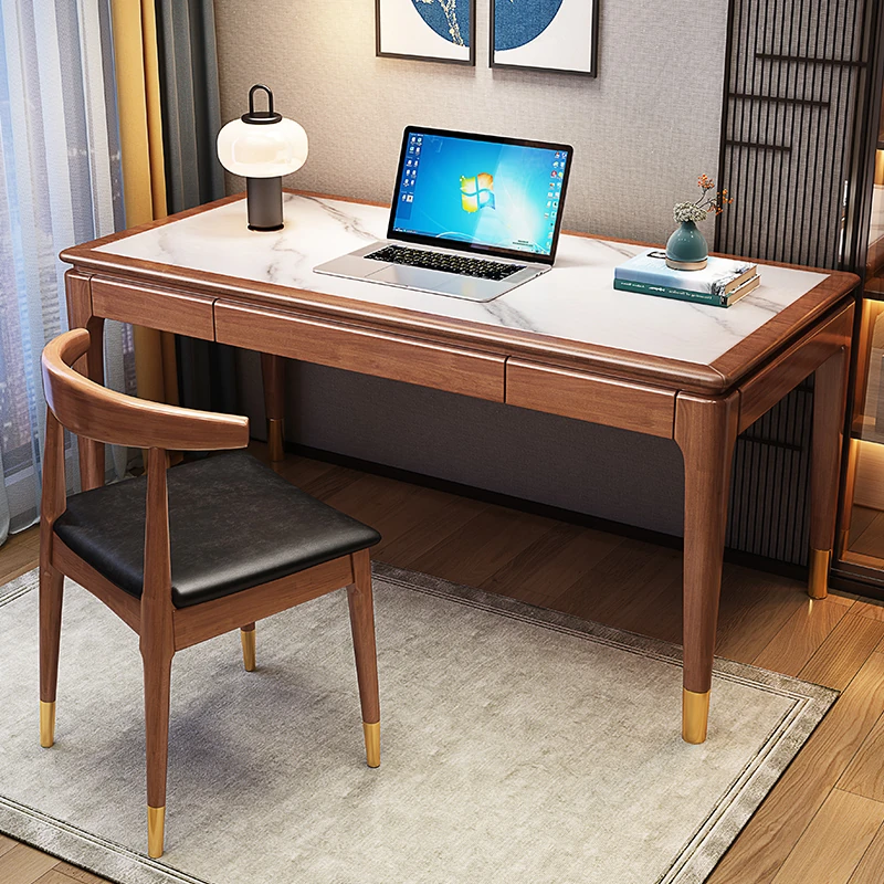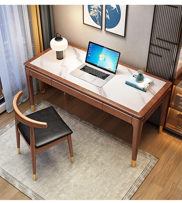 高級感あふれる無垢材使用のモダン中式パソコンデスク - シンプルでおしゃれなオフィスデスク、学習にも最適!子供用勉強机としても大活躍!