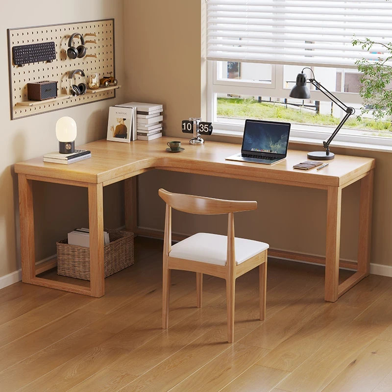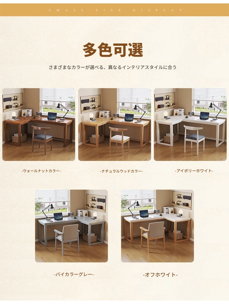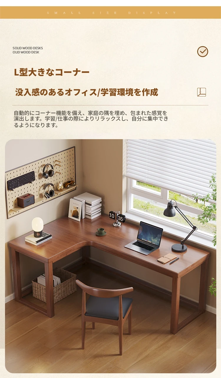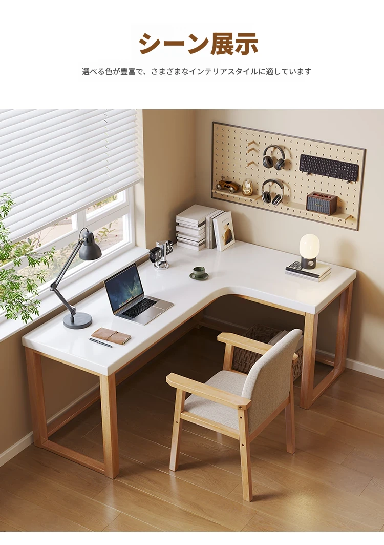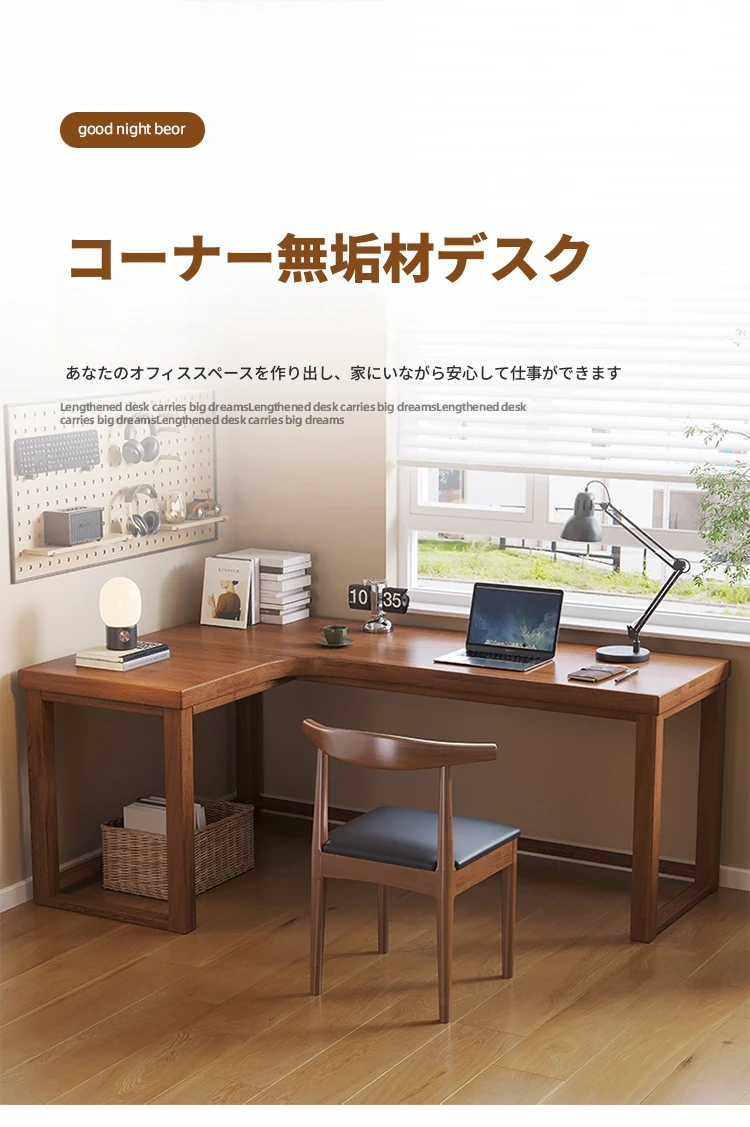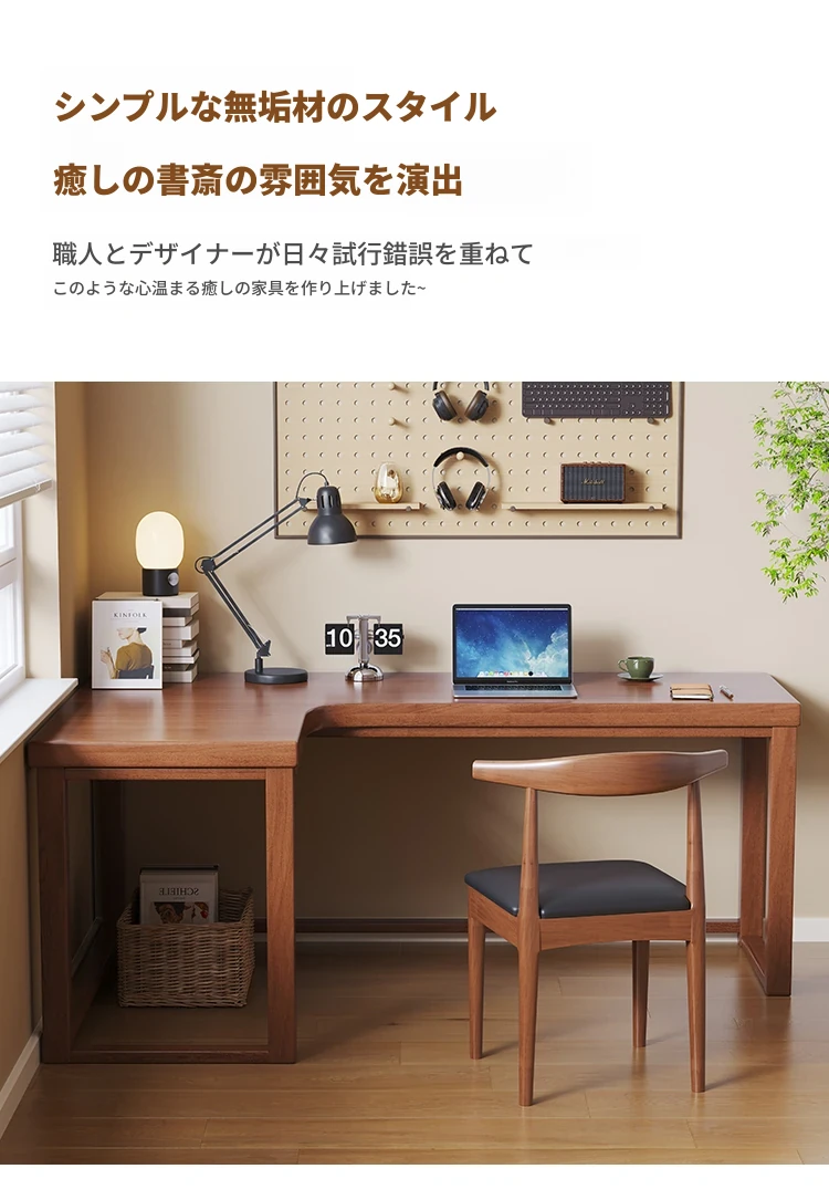 実木製 L型コーナーデスク - 家庭用、学習やオフィスに最適!スタイリッシュなデザインで、スペースを有効活用。快適な勉強や仕事環境を提供します。双人用にも対応!