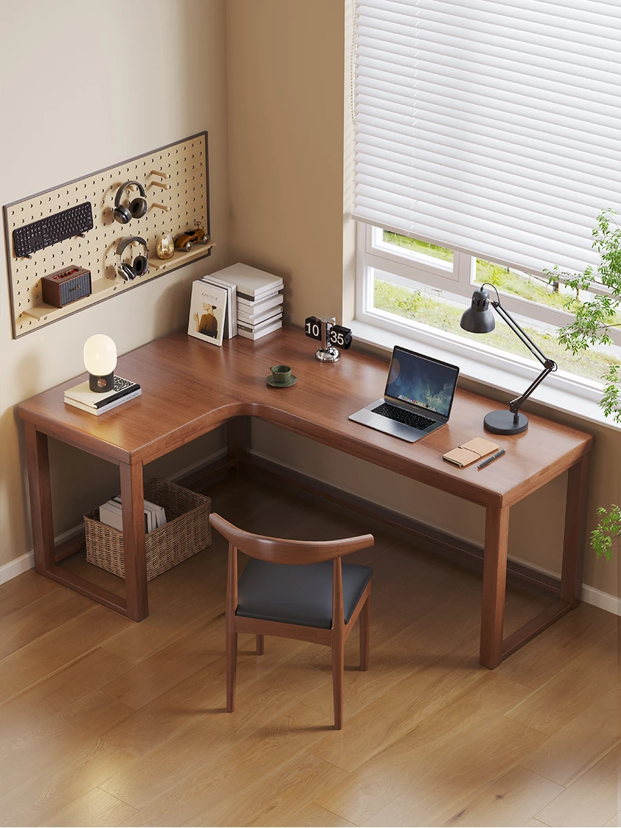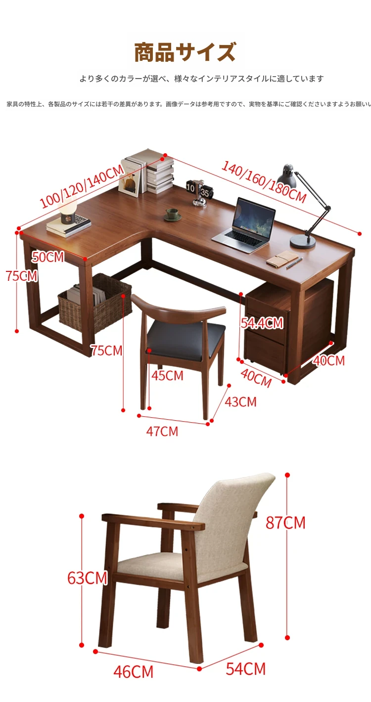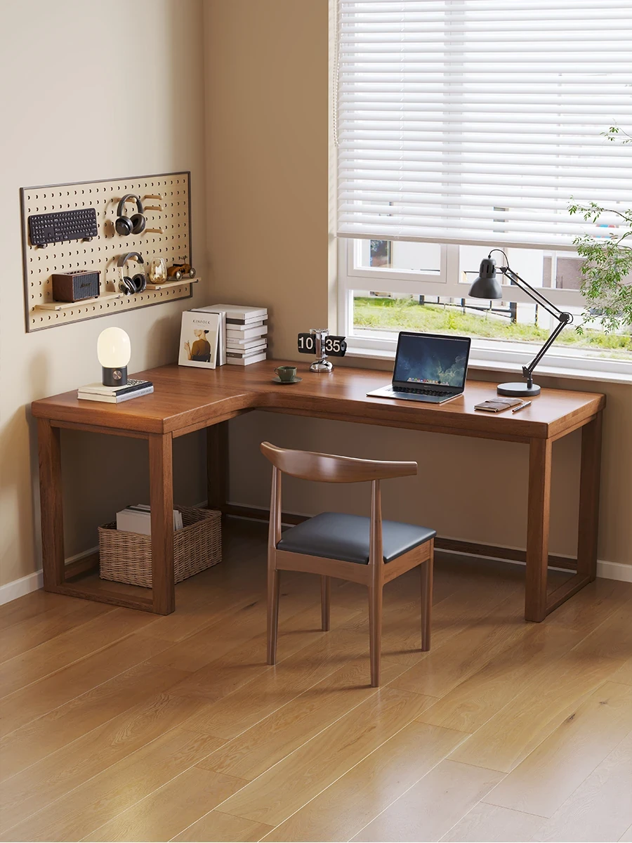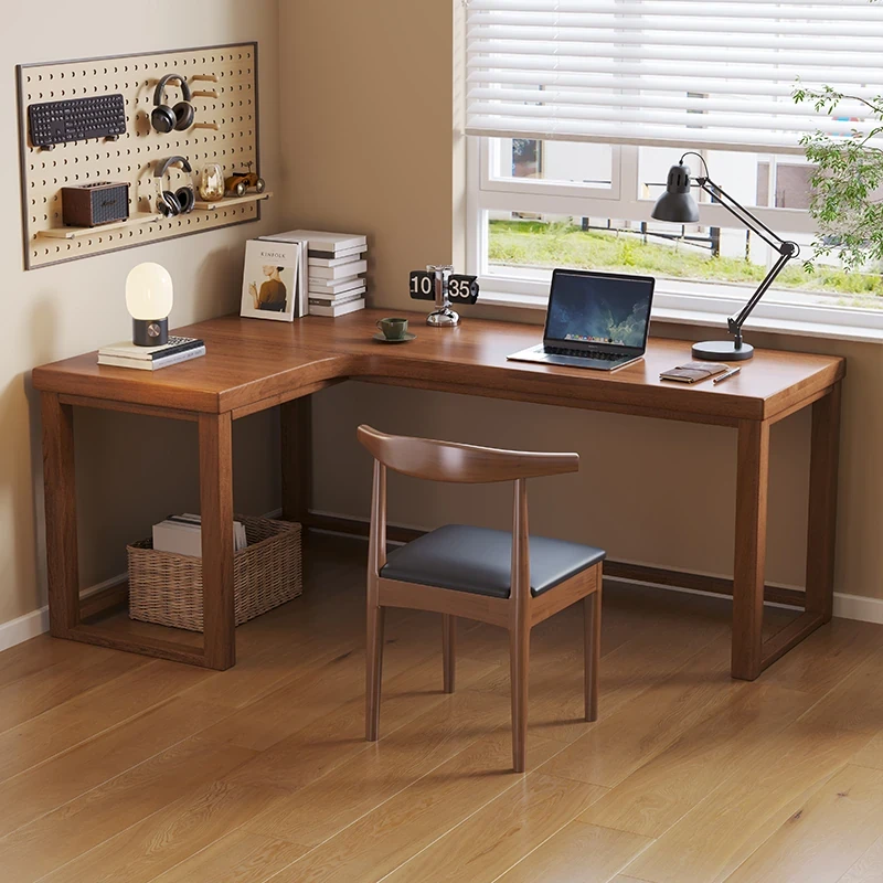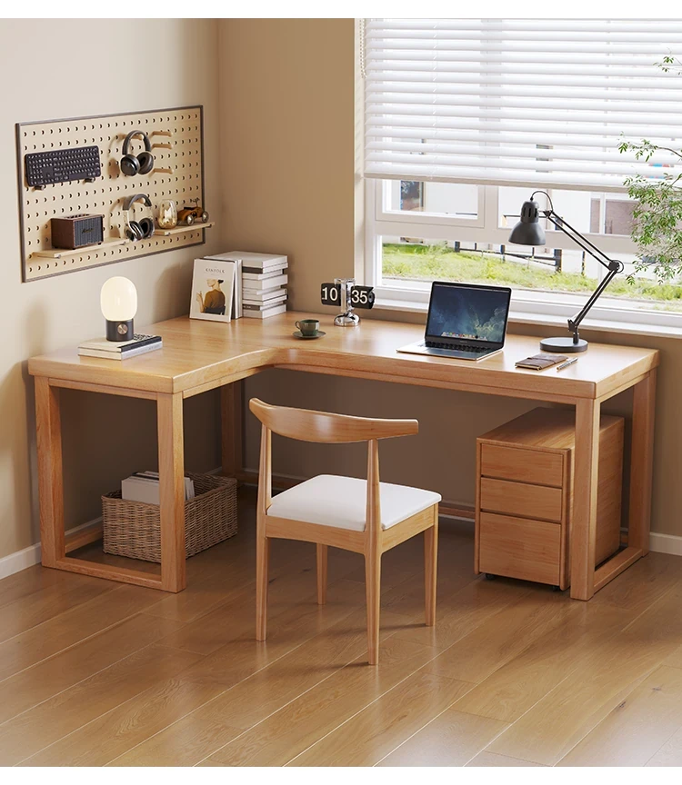 実木製 L型コーナーデスク - 家庭用、学習やオフィスに最適!スタイリッシュなデザインで、スペースを有効活用。快適な勉強や仕事環境を提供します。双人用にも対応!