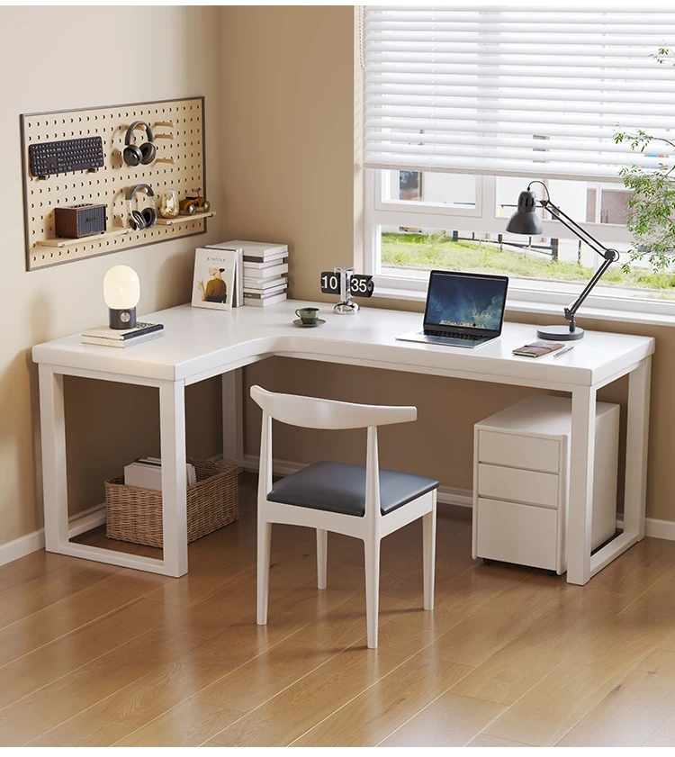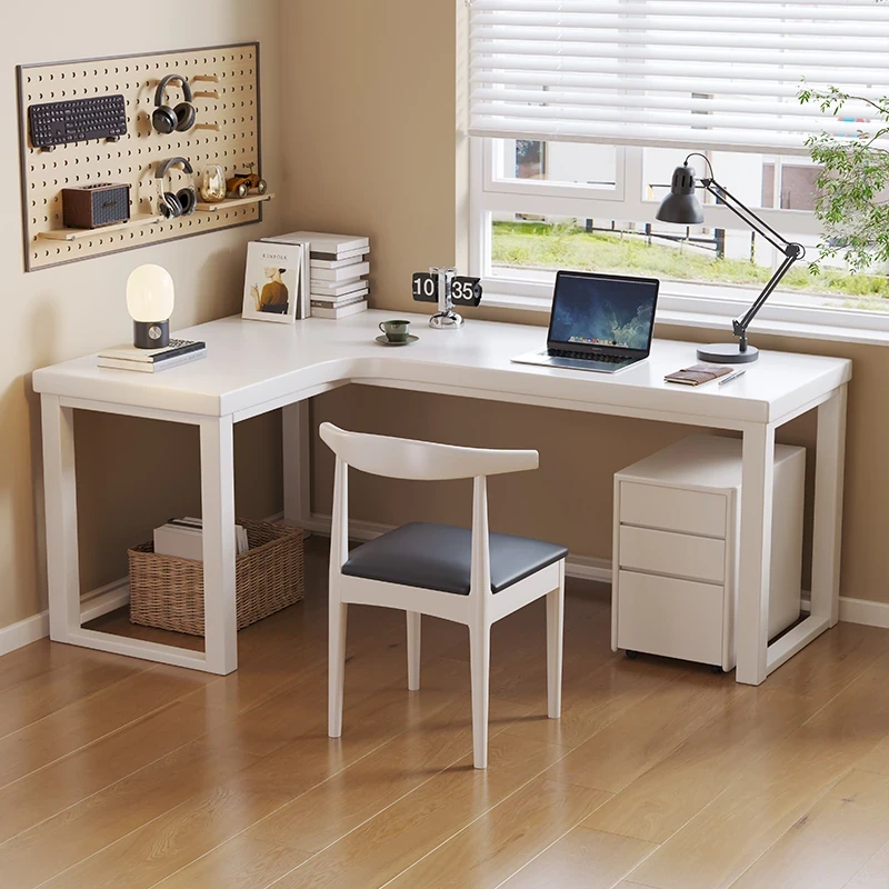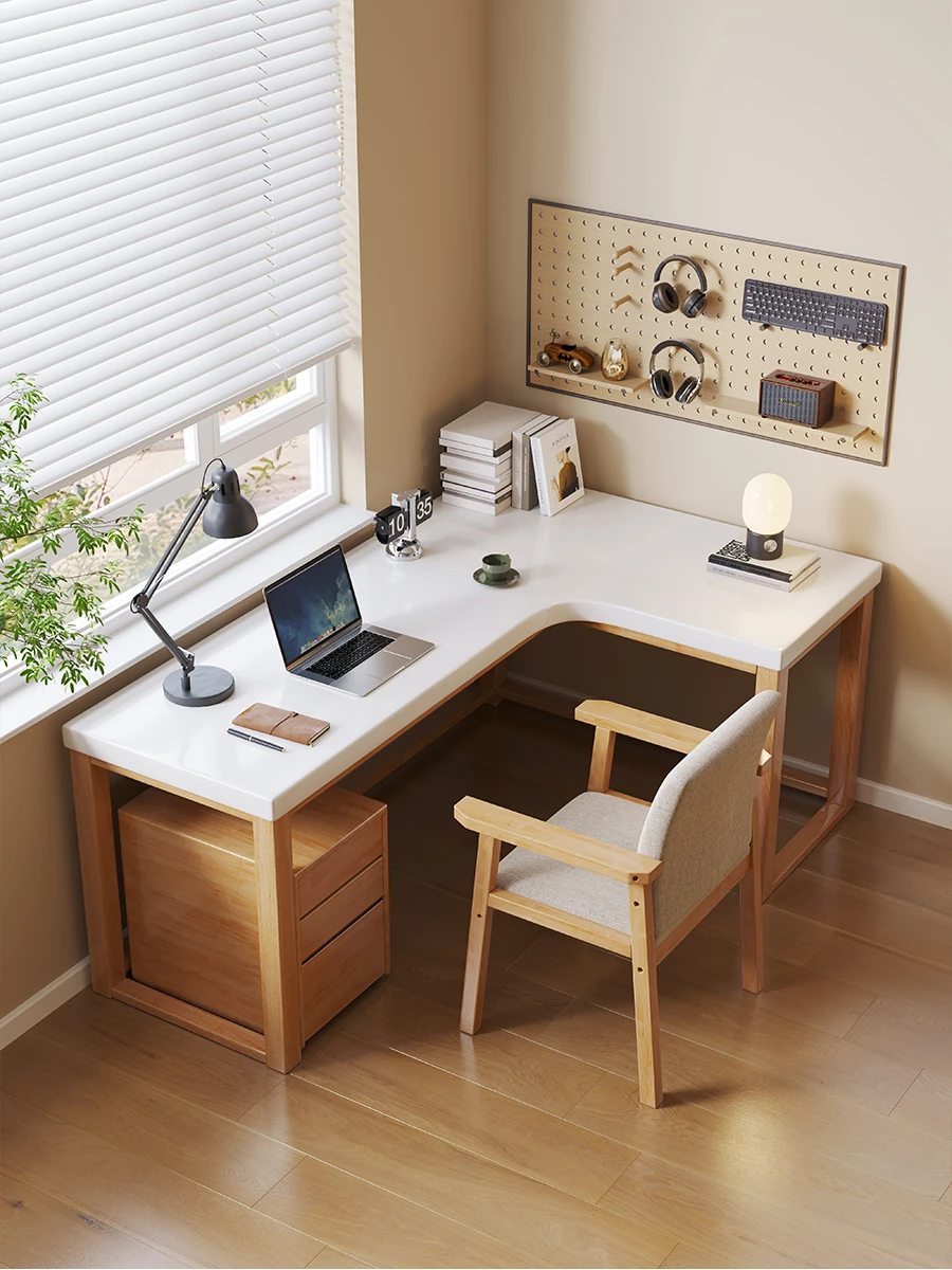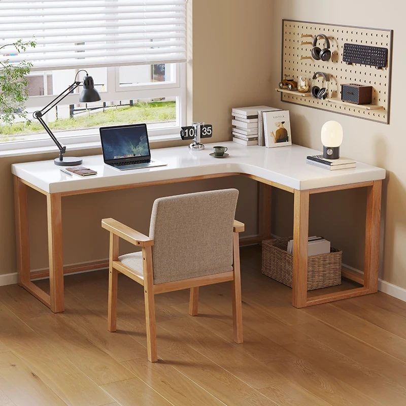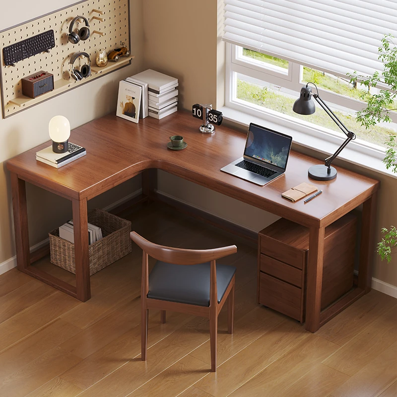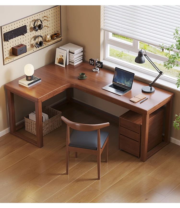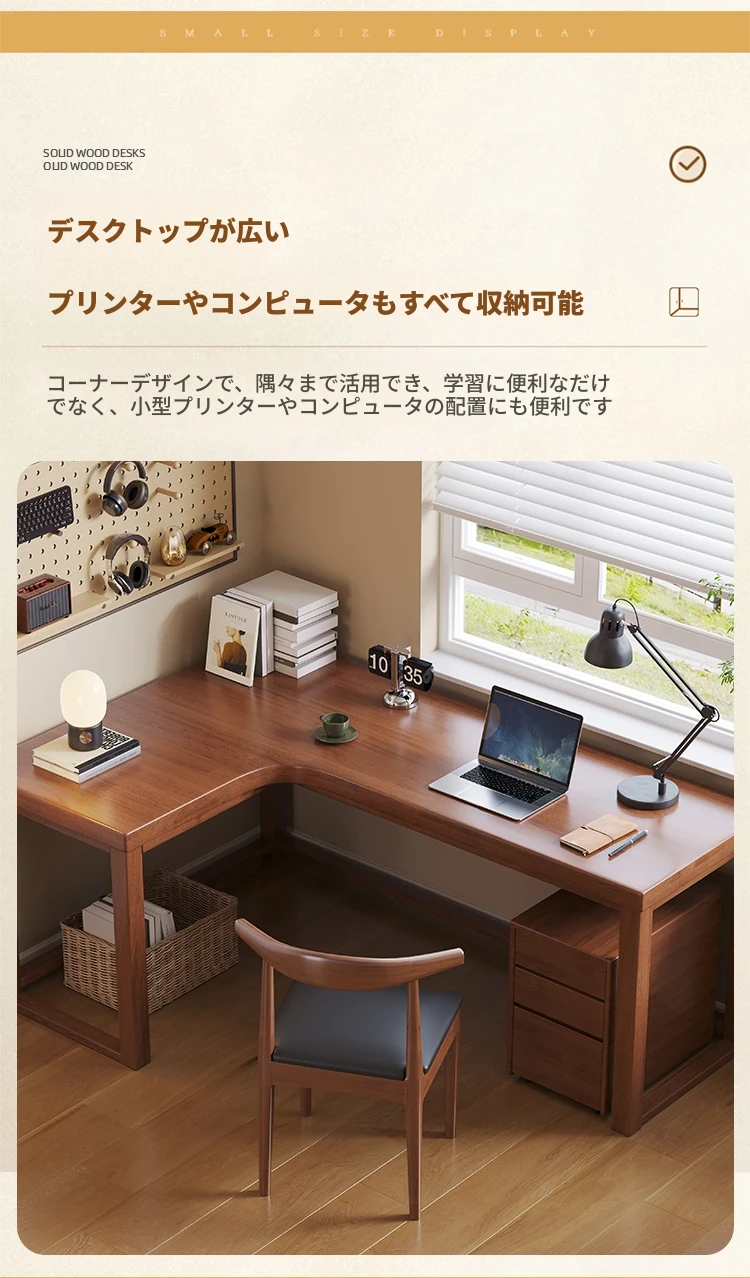 実木製 L型コーナーデスク - 家庭用、学習やオフィスに最適!スタイリッシュなデザインで、スペースを有効活用。快適な勉強や仕事環境を提供します。双人用にも対応!