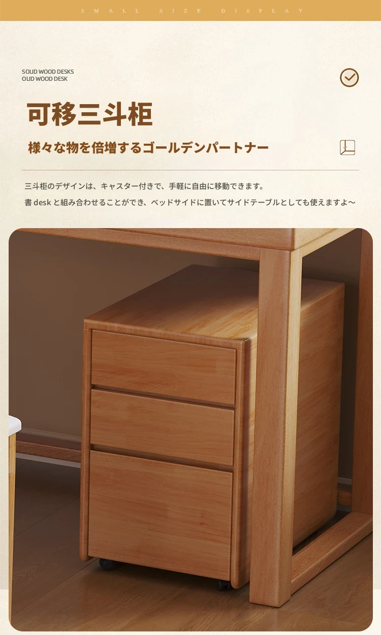 FJXDB03#ナチュラルウッド色テーブル+サイドキャビネット 【天板の木材厚4cm】
