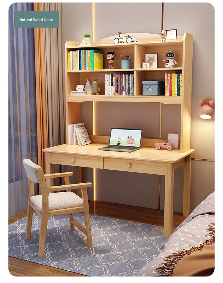 Transform your space with our Premium Solid Wood Study Desk and Bookshelf Combo! Perfect for kids' learning and home use, this stylish small-space desk adds a touch of natural elegance to any bedroom. Ideal for students seeking a functional and chic